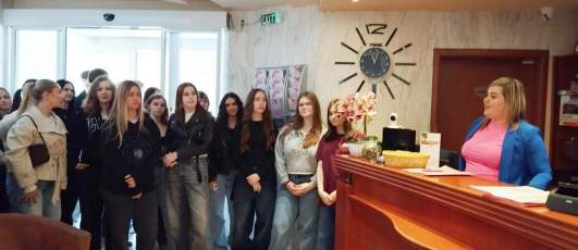 A következő célállomás a Hotel Orchidea volt, ahol a szálloda tulajdonosa Ing. Meliško Štefan fogadta a csoportot. A látogatás során Cseh Klaudia kíséretében részletes betekintést nyerhettek a szálloda működésébe. Megismerkedtek a különböző szolgáltatásokkal, a recepciós munka feladataival és felelősségével is. A diákok számára különösen hasznos volt, hogy a gyakorlatban is láthatták, miként működik egy jól szervezett szálloda.