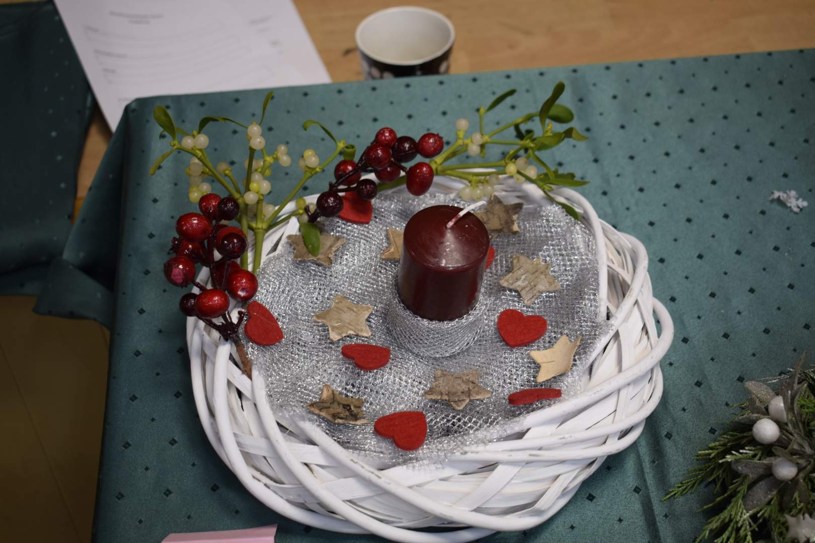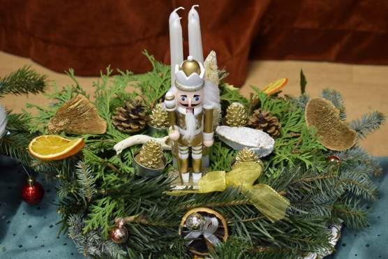 A második helyezett egy sok-sok örökzöddel, arany szalagokkal dekorált koszorú lett, amelynek „központi figurája“ egy diótörő volt.