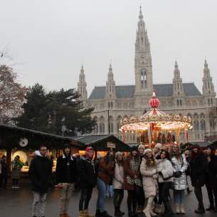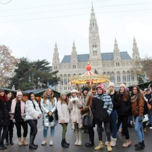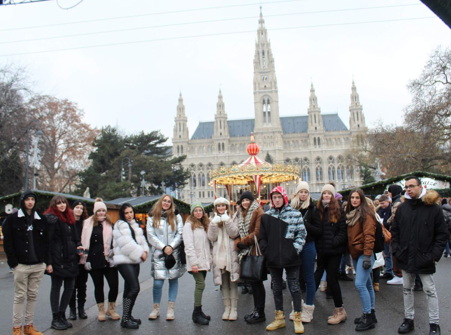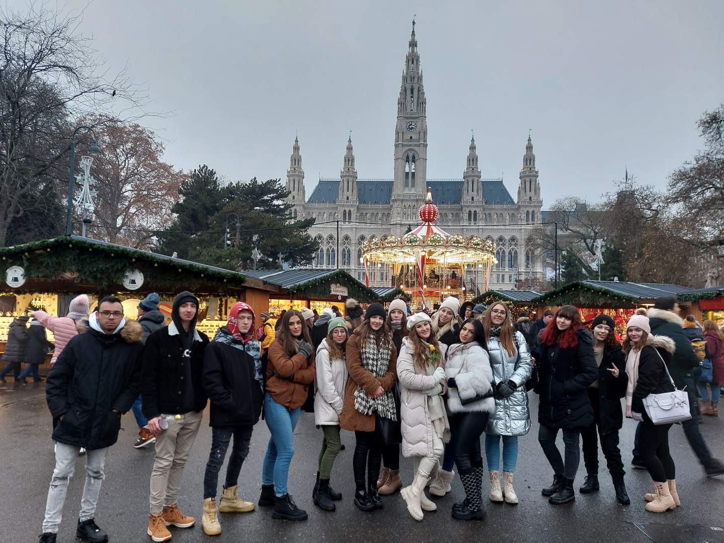 2022. december 15-én az I.SM, I.B, III.SG, III.D és IV.SG osztályok tanulmányi kiránduláson vettek részt az osztrák fővárosban. Első programpontként a főbb nevezetességeket nézték meg egy városnéző séta keretében. Látták a Habsburgok téli rezidenciáját, Széchenyi István szülőházát, bementek a Stephansdomba, majd a Kärtnerstrassén folytatták útjukat. A Sacher szállót, az Operát érintve a Burgringen kötöttek ki, és Mária Terézia szobra, valamint a Szépművészeti Múzeum és a Természettudományi Múzeum épülete mellett elsétálva, az osztrák Parlament épületét megcsodálva jutottak el a Városháza térre. Az itt megrendezett vásárban töltöttek el néhány órányi szabadidőt, megkóstolhatták az osztrák karácsonyi gasztronómiai különlegességeket és gyönyörködhettek a pazar ünnepi díszítésben. A nap utolsó állomása és egyben fénypontja a Schönbrunn kastély volt. A Habsburgok nyári rezidenciájának parkjában lévő Gloriette-hez is „felkapaszkodtak“ a diákok, sőt még egy rögtönzött hógolyócsatára is sor került. A kastélyudvarban megrendezett kézművesvásárban a csodás karácsonyi portékák közt válogattak és a gyönyörködtek a kilágított épület és a feldíszített karácsonyfa pompájában. Este igazi karácsonyváró hangulatban, sok örömteli élménnyel gazdagodva érkeztek haza Bécsből.