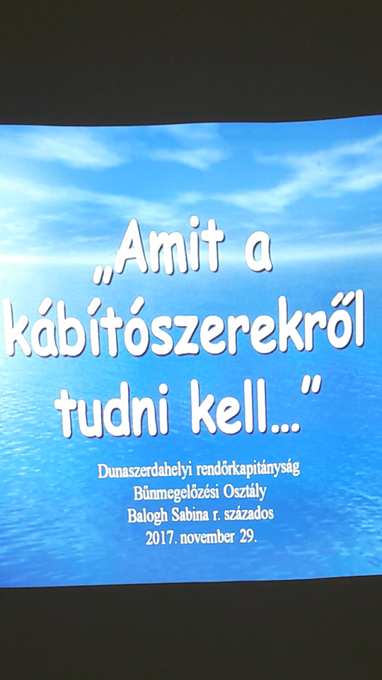 A kábítószerek fogyasztása, már az egész világban óriási méreteket öltött, s nap mint nap szedi fiatal áldozatait. A különböző drogok és a kábítószer-fogyasztás veszélyt jelent az egyén, a család, az egész társadalom számára. Legjobban azonban a jövő nemzedékét, a 14-25 éves korosztályt veszélyezteti. Az 1.FJK/A, 1.CR/B valamint az 1.HA/D osztályok érdekes előadáson vettek részt, ahol Mgr. Katona Roland és Mgr. Balogh Szabina rendőrszázadosok beszélgettek diákjainkkal a drogfüggőségről és a kábítószerek világáról. A diákok többek között megtudhatták a ma használt kábítószerek jellemzőit és azok hatásait az egyén fizikai és lelki egészségére, személyiségük és életük alakulására. A beszélgetés célja volt, hogy a diákok minél jobban megismerjék a kábítószereket, és ez alapján tudjanak majd a helyes oldalra állni és felelősségteljes személyes döntéseket hozni. A drog ugyanis betegség, súlyos testi, lelki probléma, amelyből segítség nélkül már képtelen kilépni a belesodródott fiatal. Mind a szülők, diákok, mind pedig a tanárok, pedagógusok komoly szerepet játszanak a megelőzésben és gyógyításban. Köszönjük a tartalmas és érdekes beszélgetést és bízunk a további sikeres együttműködésben.