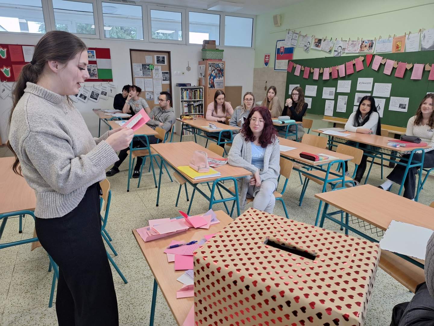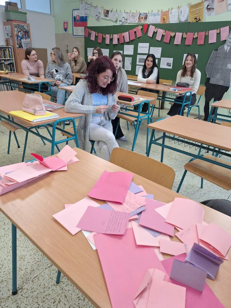 Ebből a hagyományból merített ihletet Kis Lívia tanárnő irodalmi szerelmes levelezés projektje. A tanulók híres írók és költők múzsáiként szólalhattak meg, irodalmi alakok bőrébe bújva vallhattak szerelmet legendás hősszerelmeseknek, vagy továbbgondolhatták a klasszikus történeteket, saját válaszaikkal új színezetet adva nekik. Gondolataikat színes papírlapokra vetették, majd a szívecskés „postaládába“ helyezték, ahonnan azok február 14-én, a magyarórákon felolvasásra kerültek.