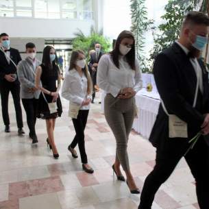 „Ballag már a vén diák..“ – ma újra felcsendült ez a dal iskolánkban. Legutóbb két éve hallottuk ezeket a dallamokat. Örültünk, hogy bár csak szimbolikusan, de mégis megtarthattuk ezt az ünnepséget, sok szerencsét kívánhattunk Nektek. Igaz, hiányoztak a színpompás csokrok, a büszke szülők, hozzátartozók, a kedves barátok. Mosolyotokat is csak elképzeltük, kimaradt a kézfogás, a bátorító ölelés. Büszkék vagyunk Rátok, hogy az elmúlt nehéz időszakot – a közel tíz hónapnyi digitális oktatást - rugalmasan és talpraesetten abszolváltátok. A nagybetűs Élet már elkezdődött számotokra... Ehhez kívánunk Mindannyiótoknak kitartást, sok sikert és jó egészséget! Vigyázzatok magatokra!