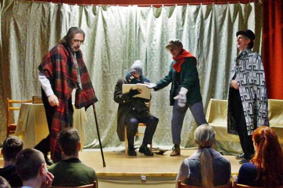 2018.12.17-én ismét ellátogatott az iskolánkba a The Bear Educational Theatre, prágai székhelyű színháztársulat, akik angol nyelven adták elő Charles Dickens Karácsonyi ének című klasszikus művét. A mű fő mondanivalója a mai világban is aktuális, az ünnepek valódi szerepének a megértése, a szeretet felébresztése az emberekben. A főszereplő miután szembesül a saját gonoszságával, az átélt élmény hatására kedves, jólelkű emberré válik, megtalálja a magában rejlő jót és átadja magát az ünnep varázsának.