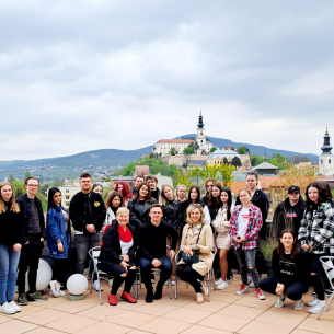 A két családi vállalkozás meglátogatása után Nyitrára utaztunk, ahol egy butikhotelt néztünk meg, ami egy 40 szobás egyedi berendezésű szálloda a Zobor alatt. Személyesen a szálloda menedzsere mutatta be nekünk az elszállásolási berendezést, aminek teraszáról a nyitrai várban gyönyörködhettünk.
