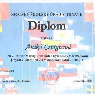 Cserge Anikó (2. B) 2011-ben  a kerületi német olimpián 2. helyezést ért el .