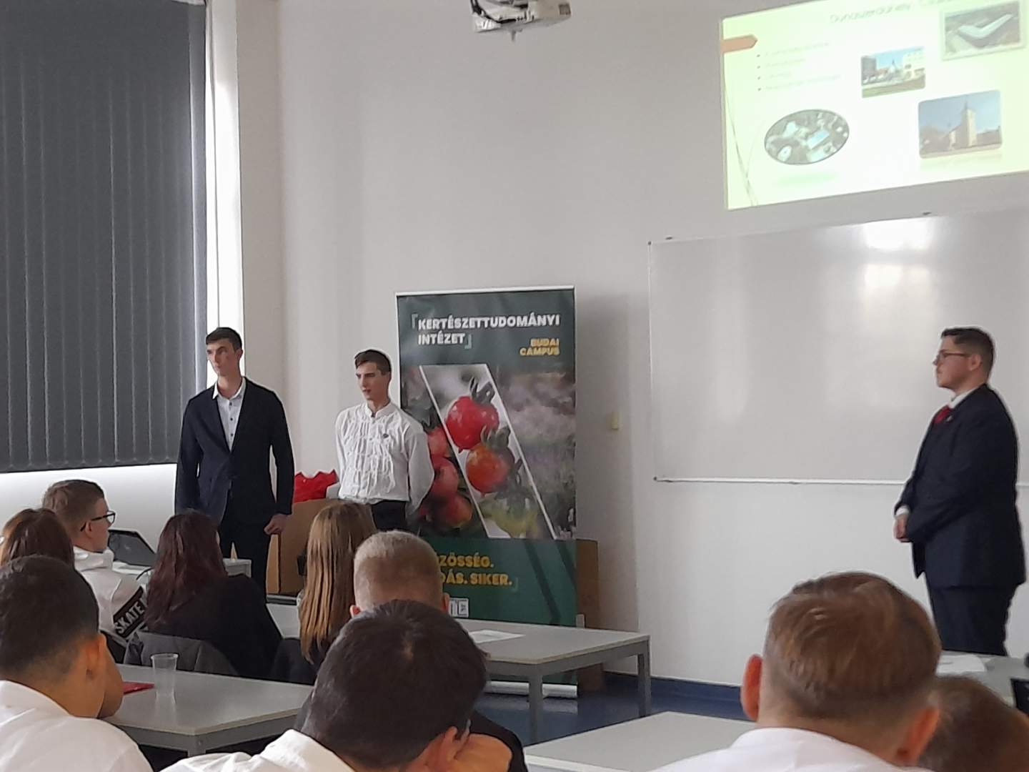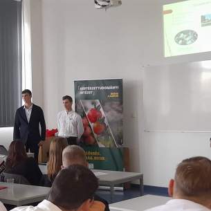 A komáromi Pro Selye Univerzitas (PSU) közhasznú szervezet a gödöllői Magyar Agrár- és Élettudományi Egyetem (MATE) szakmai védnöksége alatt meghirdette a Felvidéken egyedülálló módon, agrárium és vidékfejlesztés témájával foglalkozó Darányi Ignác nemzetközi tanulmányi versenyt. Iskolánk IV. A/F osztály diákjai közül Csápai Rudolf Balázs, Kelemen László és Ágh Dániel képviselte az iskolánkat. A diákokra Darányi Ignác életével kapcsolatos írásbeli vetélkedő, majd 30 perces írásbeli növénytani vetélkedő várt. Minden csapat maximum 2 perces kisfilmben mutatkozott be, amelyet az általunk elkészített prezentáció követett. A bemutató témája a szülőföld egy élőhelyének bemutatása volt, különös tekintettel az élőhely történetére, jelentőségére, fajgazdagságára, védettségére, ill. a potenciális veszélyeztetettségére. Mi a Tőkési ág védelmét, veszélyeztetettségét mutattuk be. Az egyes feladatokat az egyetemi tanárok pontozták. Dr. Geösel András, a MATE Kertészettudományi Intézetének igazgatója, „Mire jók a gombák - az étkezésen kívül?” c. prezentációval egybekötött előadása színesítette a programot. Diákjaink a megmérettetésben az előkelő 2. helyen végeztek, amihez csak gratulálni lehet. A verseny elérte célját, hiszen megismerkedhettünk a Szerbiában élő hasonló érdeklődési körrel rendelkező diákok csapataival is. Köszönet a kiváló szervezésért!