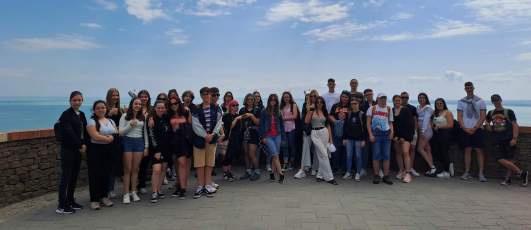 Diákjaink rendkívül tartalmas és emlékezetes kiránduláson vehettek részt 2023. május 10-én Budapesten. A magyar fővárosban töltött napjukat a budai Várnegyedben tett sétával kezdték, ahol a pesti oldal páratlanul szép panorámájában gyönyörködhettek, valamint megcsodálhatták a Várpalota impozáns épületeit. Délután Presser Gábor és Sztevanovity Dusán töretlen sikerű musicaljét, A padlást tekintették meg a Vígszínházban. Az élménydús napot egy pesti sétával zárták, érintve a Parlament épületét, József Attila A Dunánál című verse ihlette szobrát, ill. a Cipők a Duna-parton holokauszt-emlékművet.