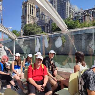 Utolsó napot csapatunk Franciaország fővárosában, Párizsban töltötte. Első megállónk a 2019-ben leégett Notre Dame-hoz vezetett. A munkálatok miatt csak kívülről tekinthették meg. Ezután hajóra szálltak, bato bussal utaztak a Szajnán egészen a városházáig. Innen gyalog folytatták az utat, a Pompidou Központig. Egy kis szünet után a Louvre udvara következett, majd a Musée D'Orsay, ahol csodálatos festményeket, szobrokat láthattak. Innen újra hajóra szálltak és elhajóztak egészen az Eiffel toronyig. A torony tetejéből csodálatos látvány tárult mindenki szeme elé. A toronyból leérkezve már csak a hazaút következett. Vasárnap koradélután élményekben gazdagon tértek haza diákjaink a hosszú útról.