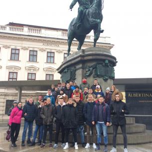 A buszról leszállva gyalogos városnézés következett. Megcsodáltuk Bécs történelmi központját, nevezetesen a Hofburg-ot, a Heldenplatz-ot, a Városházát, a Parlamentet, a Sissi múzeumot, a Spanyol lovasiskolát, a Szent Mihály kegytemplomot, a Pestis oszlopot, a Vastuskót és a Graben végén a Szent István dómot. A városnéző sétánk végén meglátogattuk Bécs híres múzeumát, az Albertina-t, ami mindenkinek egy felejthetetlen élményt jelentett.