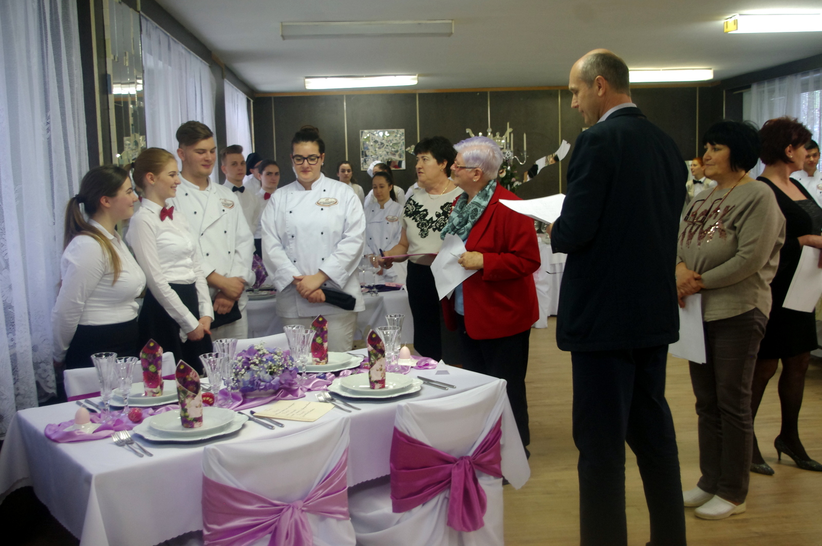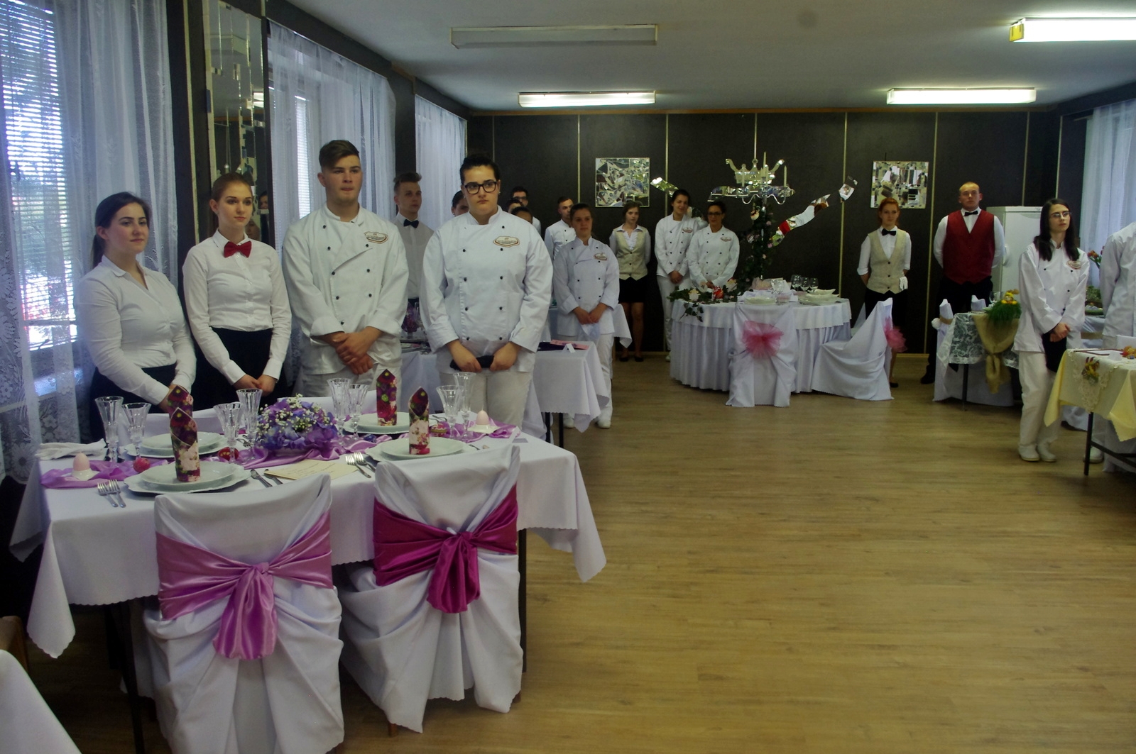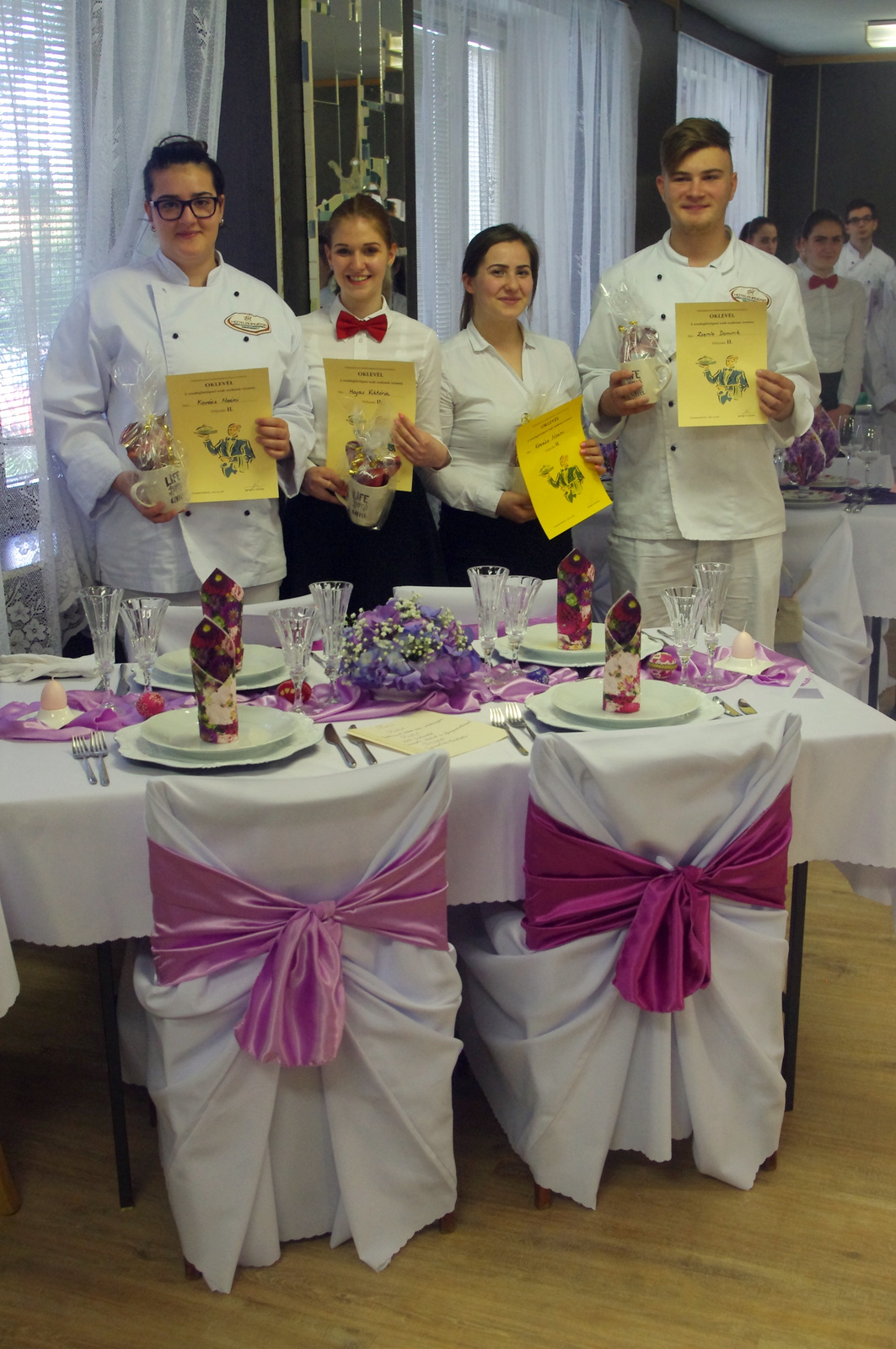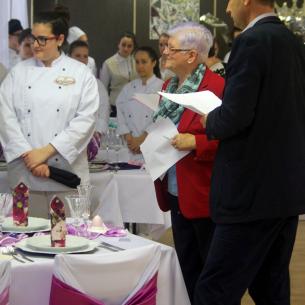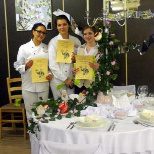 A négy éve működő tanulmányi szak eddigi legnagyobb és legsikeresebb tudáspróbáján rendkívül finom falatokkal és dekoratív ünnepi ruhába öltöztetett asztalokkal kápráztatták el a versenyzők az iskola vezetőségét.