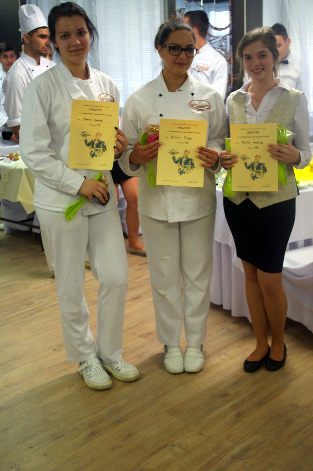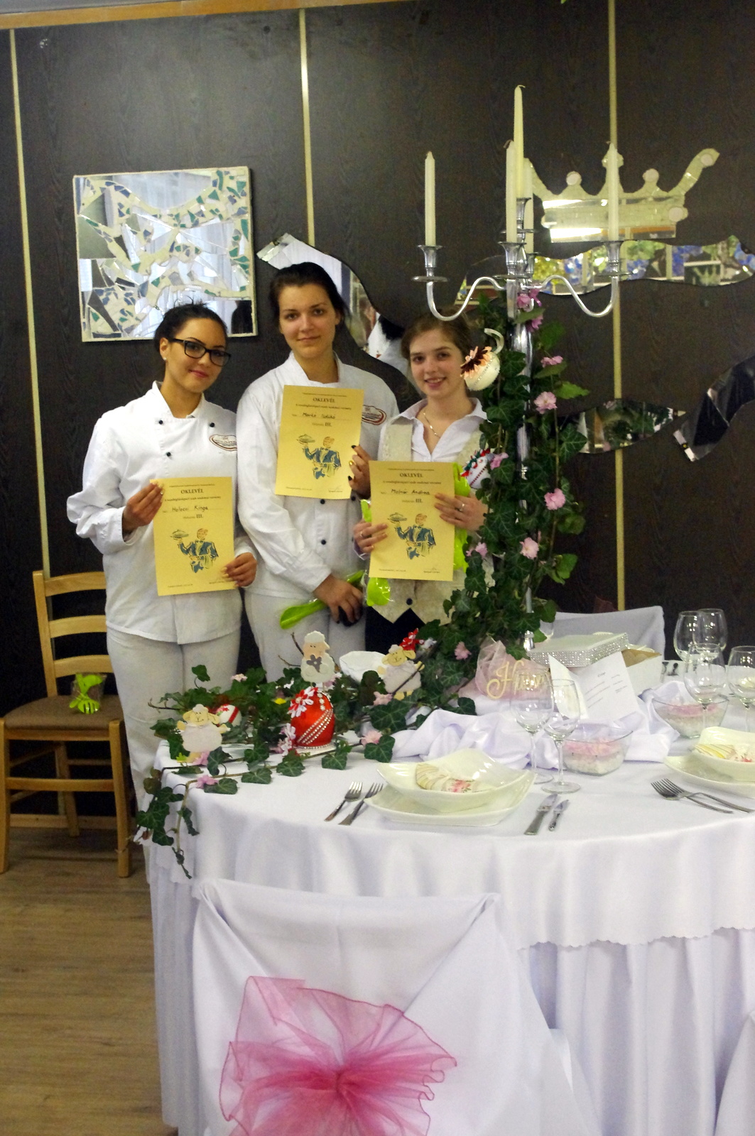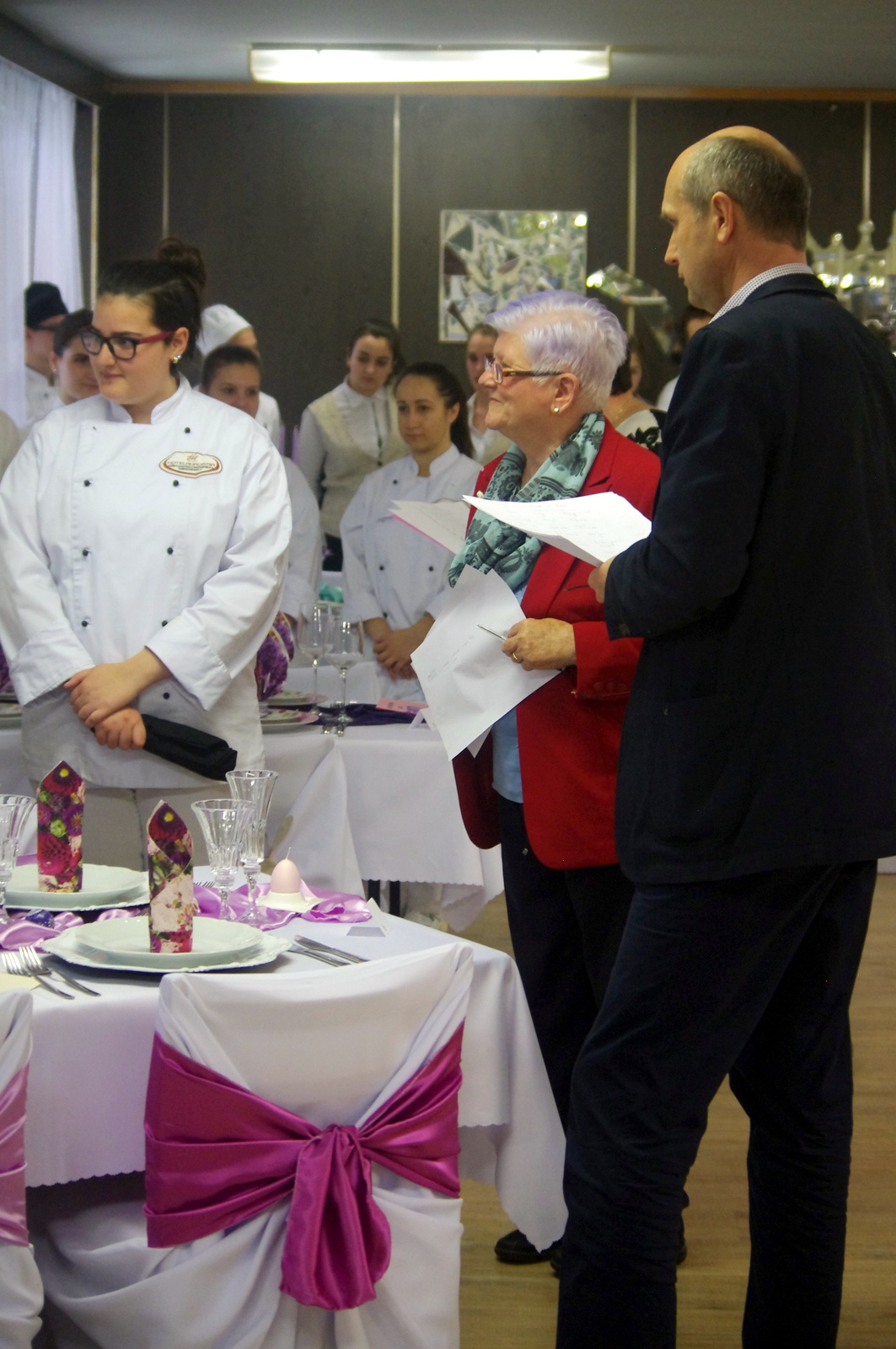 A négy éve működő tanulmányi szak eddigi legnagyobb és legsikeresebb tudáspróbáján rendkívül finom falatokkal és dekoratív ünnepi ruhába öltöztetett asztalokkal kápráztatták el a versenyzők az iskola vezetőségét.