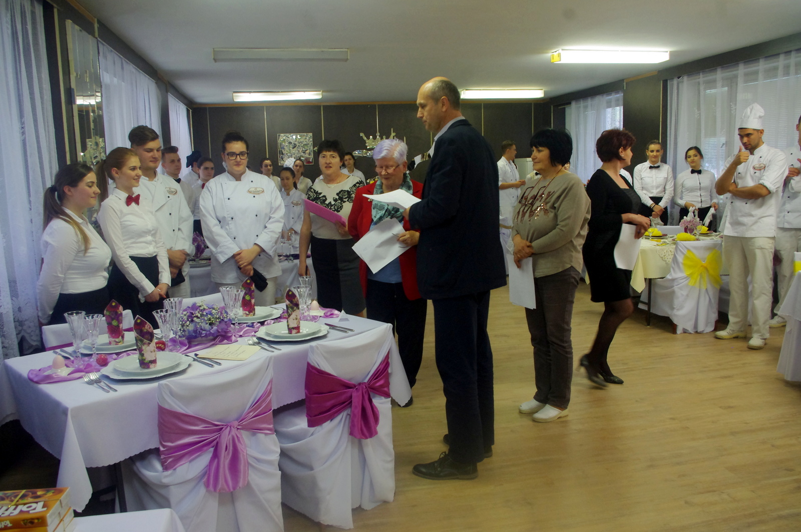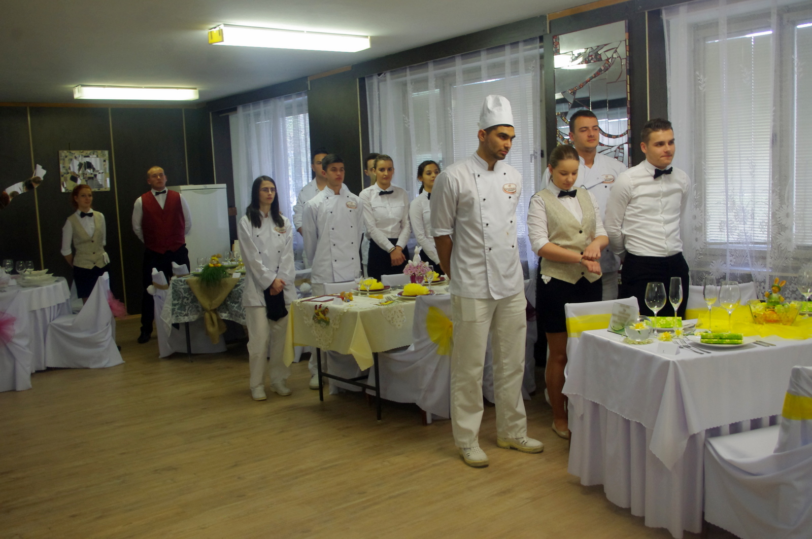 A pincérek feladata egy ünnepi díszasztal elkészítése, megterítése volt. A zsűri a húsvéti dekorációk kreatív megkomponálását, a szakavatott kellékválasztást, a terítési szabályok betartását pontozta.
