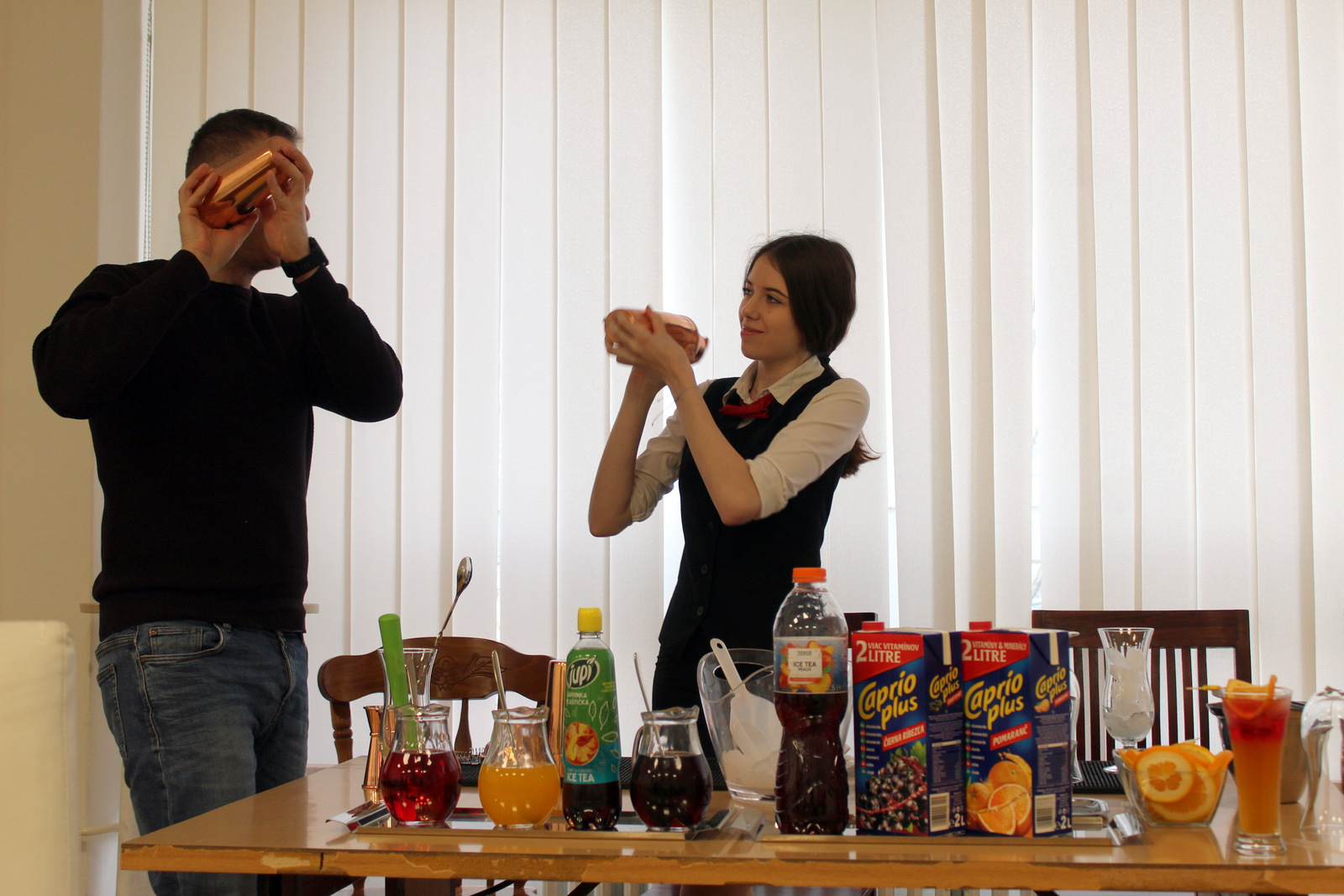 A III.D/HA osztály néhány tanulója a legutóbbi szakmai gyakorlaton a koktélkészítés alapjait igyekezett elsajátítani. Gaál Roland tanár úr nagyon elégedett volt az első próbálkozásokkal.