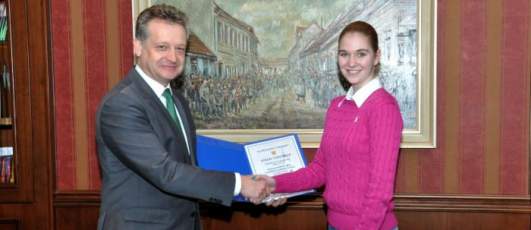 A nemzetközi diáknap alkalmából a Nagyszombat Megyei Önkormányzat díjban részesítette a sportban elért eredményeiért a birkózó Hakszer Balázst, iskolánk diákját.