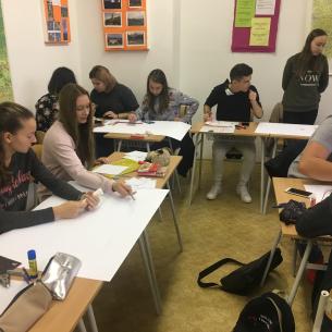 Iskolánkon hatodik alkalommal rendeztünk a „Nyelvek európai napja” alkalmából iskolai programot. A nyelvi nap három előadó beszámolójával kezdődött. Bartalos Tünde Amerikában és Angliában megélt élményeiről, Katona Ágnes Írországról és Antal Tamás az utazásairól mesélt diákjainknak. Ezután diákjaink három fős csapatokban kvíz kérdéseket oldottak meg, és letesztelhették mennyire ismerik az angol- valamint németül beszélő országok szokásait, kultúráját. A kvízt követően a csapatok plakátokat készítettek szabadon választott témára. Büszkék vagyunk diákjainkra, hogy évről évre egyre kreatívabb plakátokkal kápráztatnak el bennünket