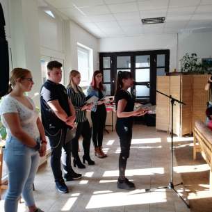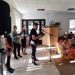 A Vidékfejlesztési Szakközépiskola tanulói 2019.október 22-én, egy kellemes, napfényes, őszi napon műsorral kedveskedtek a Járási Nyugdíjas Klub tagjainak. A szépkorúak hálás szívvel és tapssal fogadták az előadást. Résztvevők: Krajcir Karolina- II.A, Borbás Máté Péter- II. A, Varga Rebeka - III. B, Baláz Noémi - IV. B, Mészáros Fanni- IV. A. Köszönet érte!