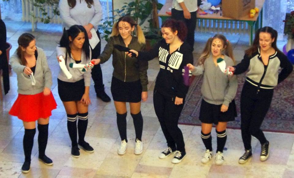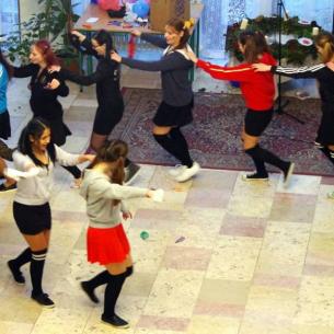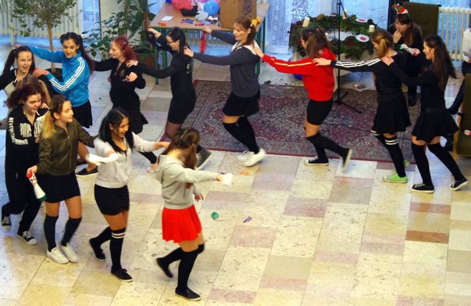 Az egész éves kemény munkát a karácsonyi szünet előtti utolsó napon iskolánk tanulói örömteli gólyaavatással egybekötött színes évzáró show-val zárták. A hagyományokhoz híven az iskola legifjabb tanulóinak az eskütétel után néhány ügyességi feladatot kellett abszolválniuk, illetve egy előre kisorsolt, valamilyen színhez kapcsolódó magyar dalhoz megszerkesztett koreográfiát kellett előadniuk.