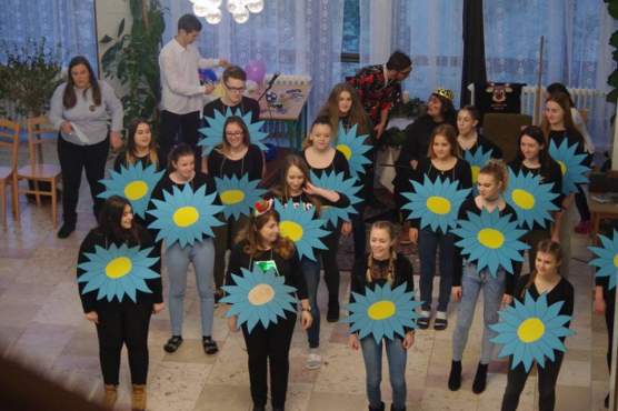 A műsorba idősebb társaik is bekapcsolódtak, így elsőként a másodikosok Tolcsvay László Csak egy kékszínű virág című dalának feldolgozásával indítottak. Produkciójuk óriási sikert aratott, nem csak a kitűnő „virágba borult” színpadkép nyerte el a közönség tetszését, de legfőképp a mozgássérült osztálytársuk és az osztályfőnök „aktív jelenléte” váltott ki igazán nagy tapsot a jelenlévők körében.