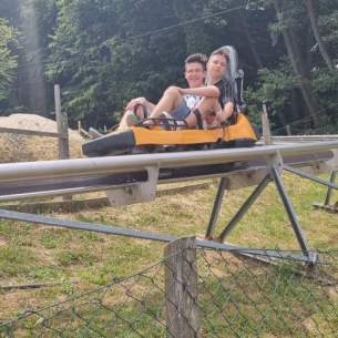 Emellett a gokart és a bob pálya sem maradhatott el, ahol jókat versenyeztünk és nevettünk .