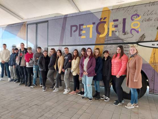 Petőfi Sándor születésének 200. évfordulója alkalmából a Petőfi Irodalmi Múzeum új vándorkiállítása múzeum-busz formájában Dunaszerdahelyre érkezett. Diákjaink is „felszálltak“ a különleges járgányra, és egy időutazás keretén belül megismerkedhettek a magyar irodalom XIX. századi „költőinfluenszerének“ életeseményeivel, kapcsolataival, kedvenceivel. Az interaktív kiállításon minden szabad volt, ami egy hagyományos múzeumban tilos. A diákok minden „múzeumi tárgyat“ megfoghattak, kipróbálhattak, miközben érdekesebbnél érdekesebb információkat hallhattak a költő mindennapjairól, különleges szokásairól, írói pályájának legizgalmasabb történéseiről.