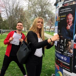 Diákjaink idén is bekapcsolódtak a Posztolj verset az utcára! világraszóló költészetnapi akcióba, amelynek a  célja a következő: "Legyen egy nap a magyar versé, árasszuk el a hirdetőoszlopokat, valódi üzenőfalakat, járdákat, és minden legálisan posztolható felületet versekkel! Lepjük meg egymást és magunkat valami igazán értékessel: a kedvenc verseinkkel."