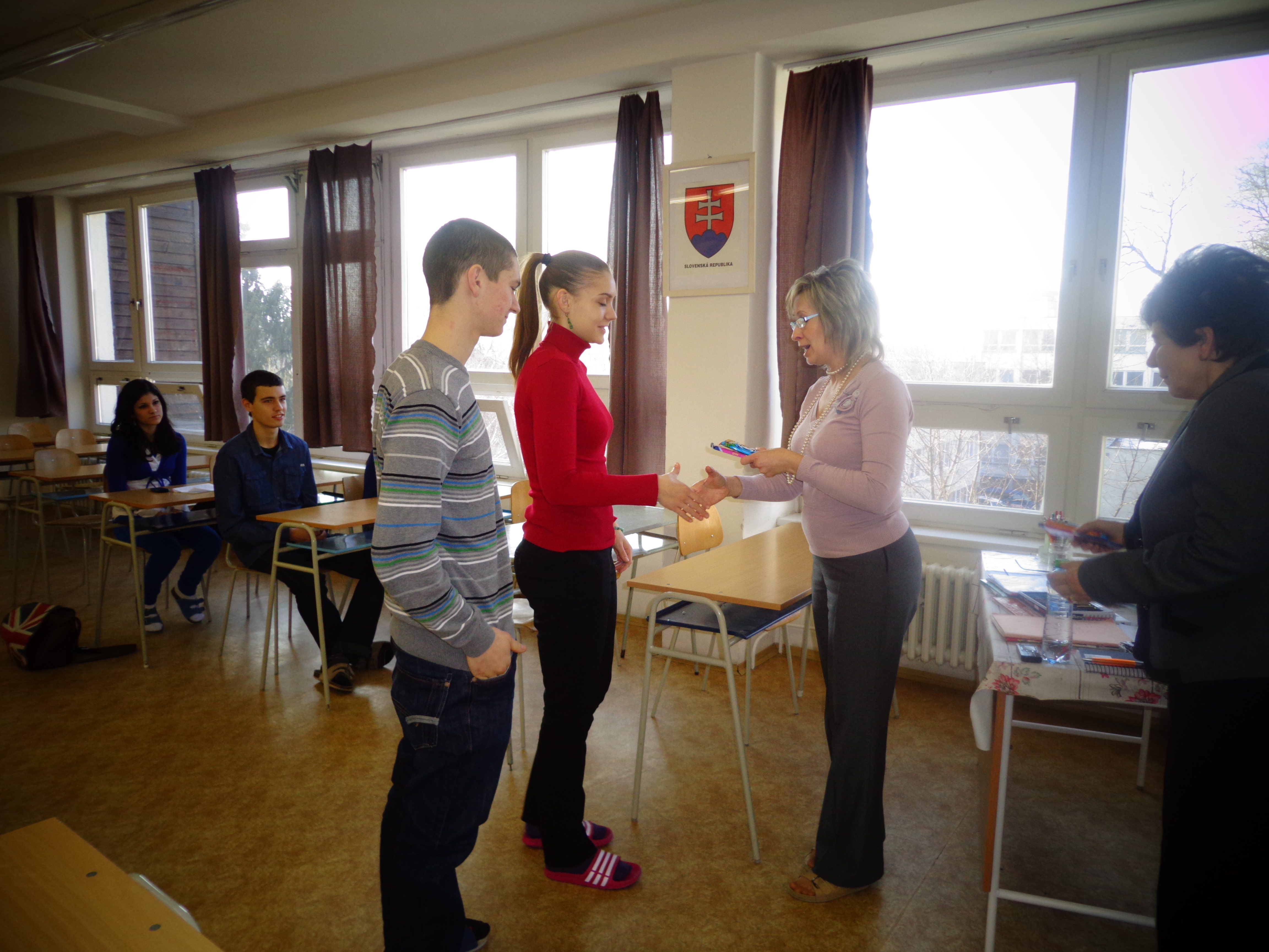 A verseny 7.50-kor kezdődött a szlovák nyelvi szaktanteremben. E tanterem felszereltsége kitűnő, mivel rendelkezik számos segédeszközzel, mint például irodalmi faliújsággal, képi segédanyagokkal, segédszövegekkel, de ezenkívül be van biztosítva a számítógép és a hozzá tartozó vetítő is egyaránt.