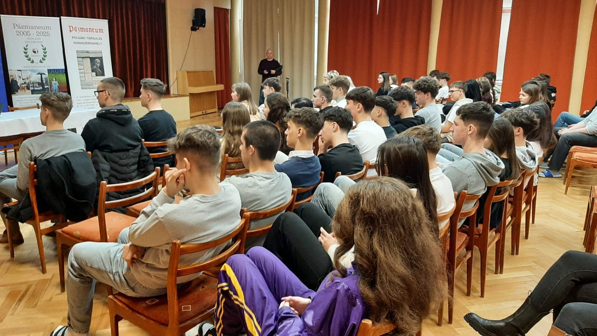 2025. február 21-én rendhagyó történelemórára került sor a Kommunizmus Áldozatainak Emléknapja alkalmából iskolánk színházermében a Pázmaneum Társulás szervezésében.