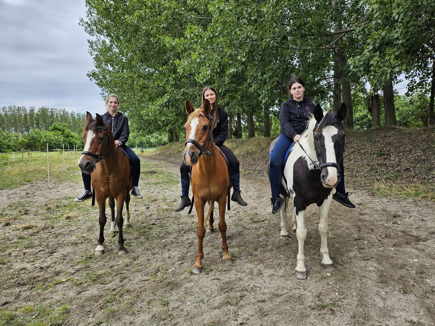 Dnešný deň bol pre študentov jazdectva a chovu koní v Jazdeckom Centre Bíró Kert ďalším dňom zábavy a tvrdej práce. Napriek mierne zamračenému počasiu sa prax konala v obvyklej dobrej atmosfére.