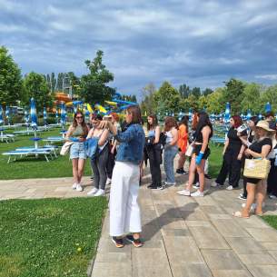 manažérka viedla skupinu cez termálne kúpalisko so všetkými atrakciami, ktoré lákajú turistov z viacerých krajín do Dunajskej Stredy. Centrum , s rozlohou viac ako 18 hektárov záujemcom ponúka širokú škálu bazénov, ubytovacích zariadení, reštaurácií a doplnkových služieb. Jazero ponúka hosťom nielen športové, ale aj kultúrne aktivity. Skupina mala možnosť porovnať rôzne kategórie a triedy ubytovania. V hoteli navštívili spojovaciu miestnosť, penzión vo výstavbe a jeho okolie. V ďalšej časti cvičenia stáže sa riešili interaktívne úlohy, založené na posvätných miestach vrátane vysvetlenia názvu malý Jeruzalem. Medzinárodne známa Mol Arena a jej okolité športové zariadenia, exteriérové objekty sú tiež spojené s návštevnosťou v oblasti cestovného ruchu. Žiaci sa vrátili do školy obohatení o zážitky a plány, pre mnohých boli tieto skúsenosti inšpiráciou pri plánovaní budúcnosti.