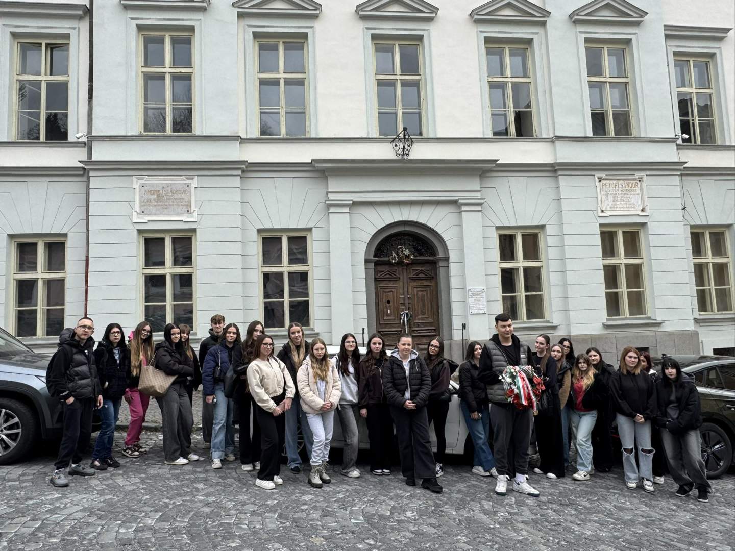 žiaci položili veniec k pamätnej tabuli maďarského básnika Sándora Petőfiho. Týmto vzdali