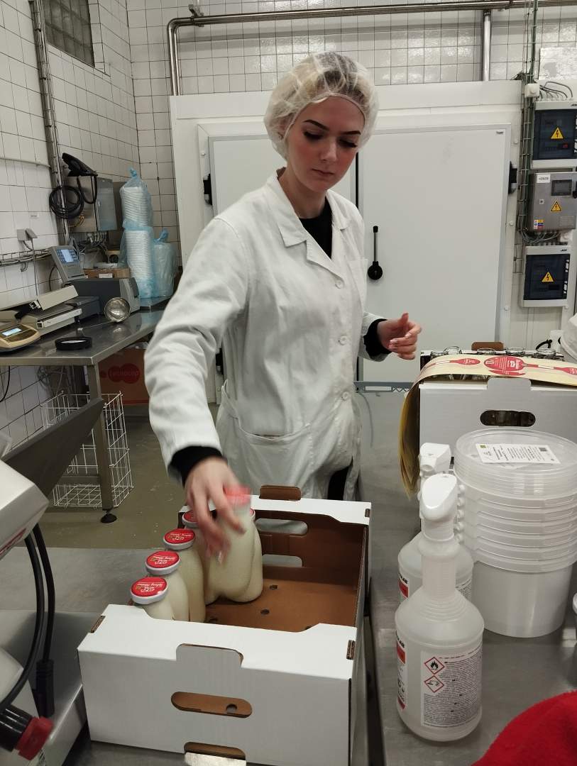 A III. A osztály minőségellenőri szakon tanuló diákjai november 23-án szakmai gyakorlat keretén belül meglátogatták Dunatőkésen a bio tejtermékeket gyártó tejüzemet /Zelený Klátov/, ahol a gyakorlatban is megtapsztalhatták a tejtermékek gyártását. Nagyon sok értékes információkhoz jutottak diákjaink, amit később felhasználhatnak tanulmányaikban. Köszönet a cég tulajdonosainak és az üzem dolgozóinak, hogy diákjaink egy tartalmas napot tölthettek Dunatőkésen.