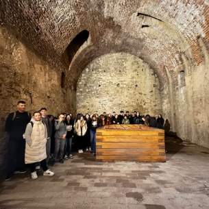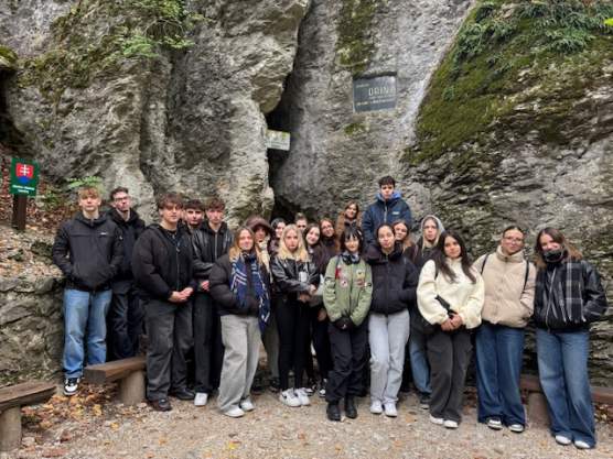 2025. október 1-jén az idegenforgalmi szolgáltatások és idegenforgalmi menedzser szakon tanuló II.B és III.B osztály szakmai terepgyakorlaton vett részt. A program célja az volt, hogy a tanulók gyakorlati tapasztalatokat szerezzenek az idegenforgalomhoz kapcsolódó nevezetességek megismerésével. Az első állomás a híres Driny barlang volt, amely Szlovákia egyetlen látogatható cseppkőbarlangja a Kis-Kárpátokban. A diákok egy körülbelül 20 perces erdei túrával jutottak el a barlang bejáratához, miközben megfigyelhették a környező élővilágot és a természeti adottságokat. A barlangban különleges cseppkőképződményeket láthattak, például oszlopokat, függőcseppköveket és zászlószerű képződményeket. A vezetett túra során a tanulók érdekes információkat kaptak a barlang kialakulásáról, élővilágáról és történetéről is. A hűvös, párás levegő ellenére mindenki élvezte a különleges látványt és az egyedi hangulatot.