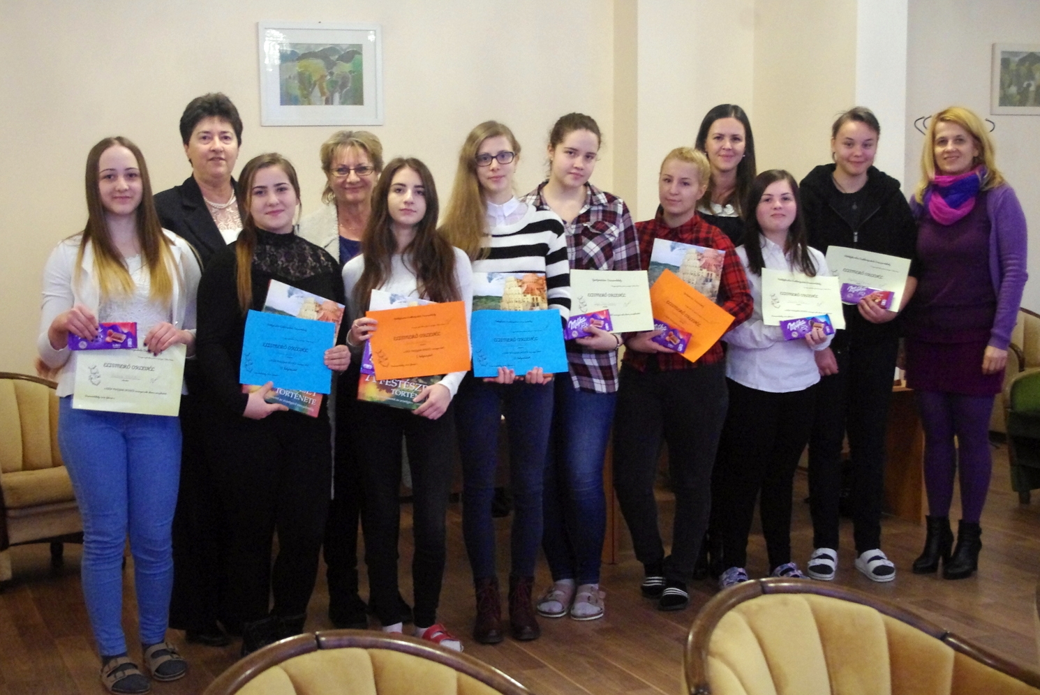 A megmérettetés jól sikerült, mindenki ügyesen teljesített és megérdemelten vehette át az elismerő okleveleket és a szép könyveket. A győzteseknek, Kosár Laurának és Kozma Emesének gratulálunk, és sok sikert kívánunk a somorjai körzeti fordulóban.