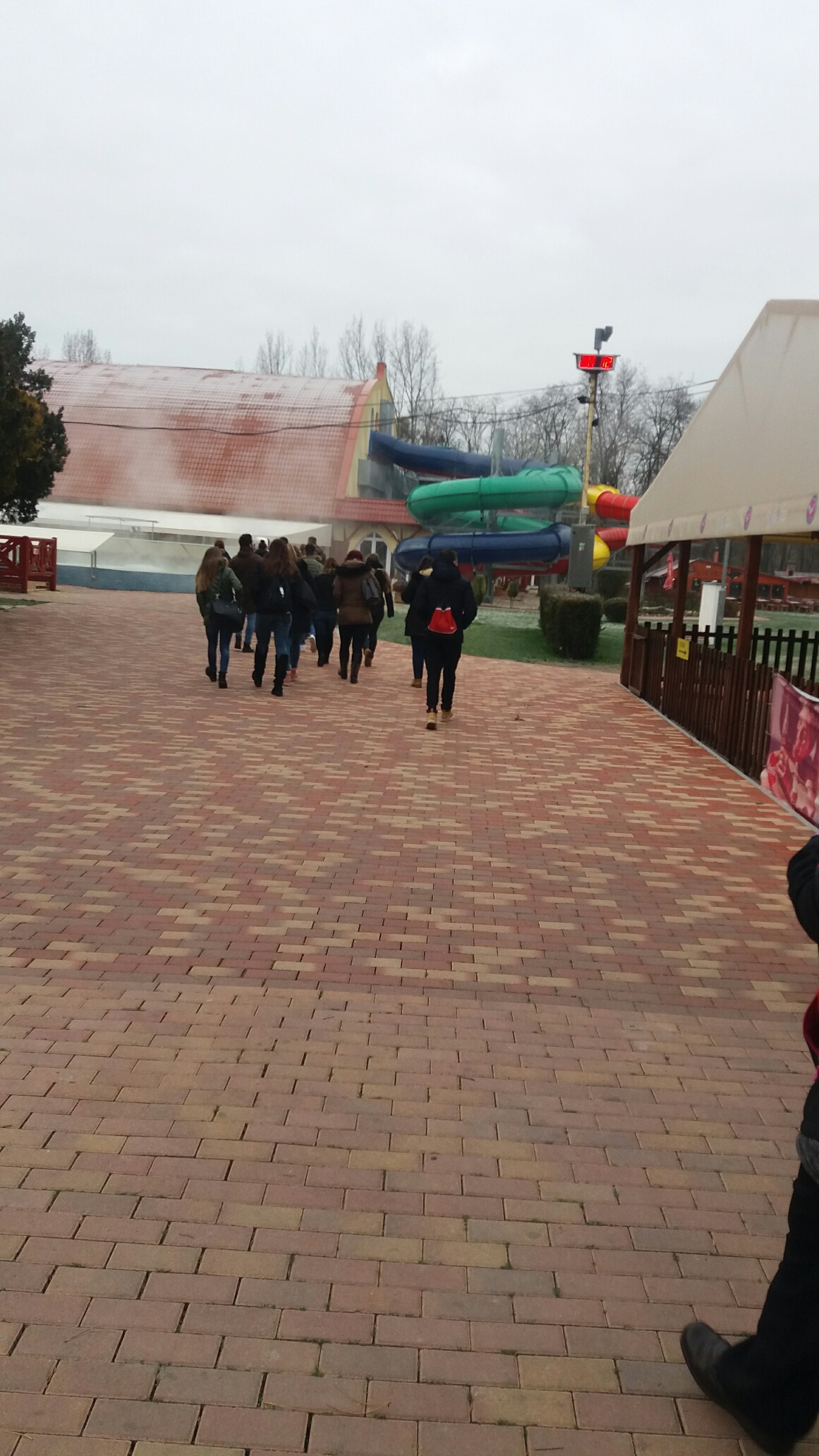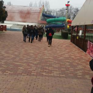 A fürdő épületét belülről és kívülről Görföl Vilmos mutatta be és sok hasznos információt is megtudhattunk a fürdő fejlesztésének jövőbeli elképzelésieről, terveiről (pl. hullámmedence és ugrótorony építése). Ezek mellett arra is fény derült, hogy miért nevezték el a termálfürdőt Corvinus-nak. A tartalmas beszámoló után a diákok kipróbálhatták a termálvíz adta  jótékony hatást is, megmártóztak a termálvízben