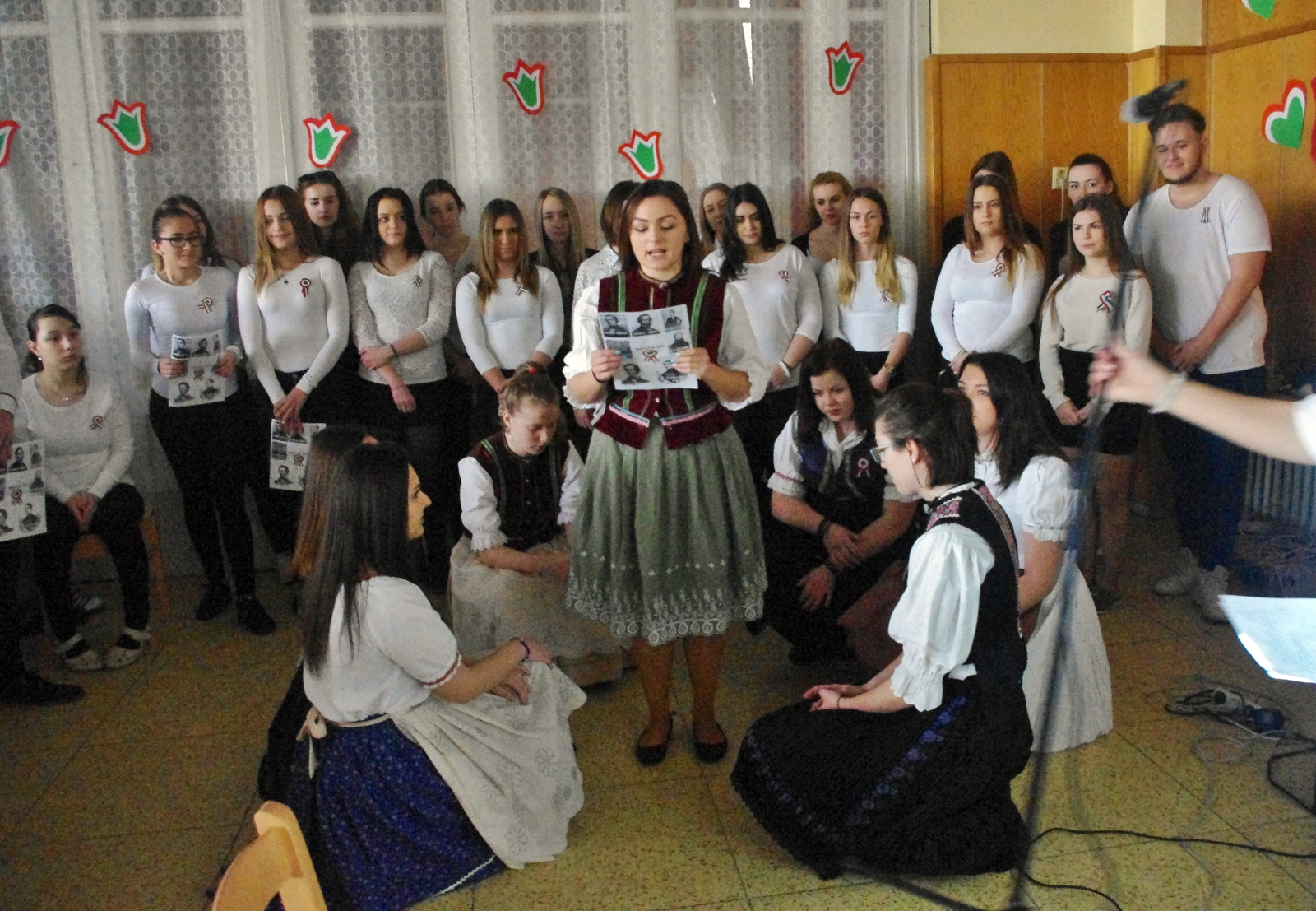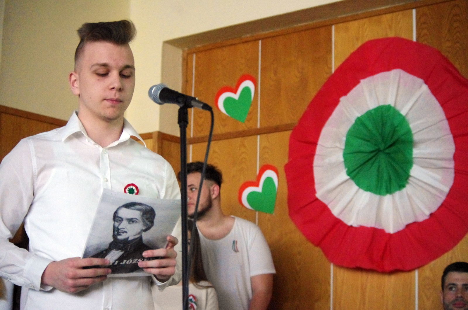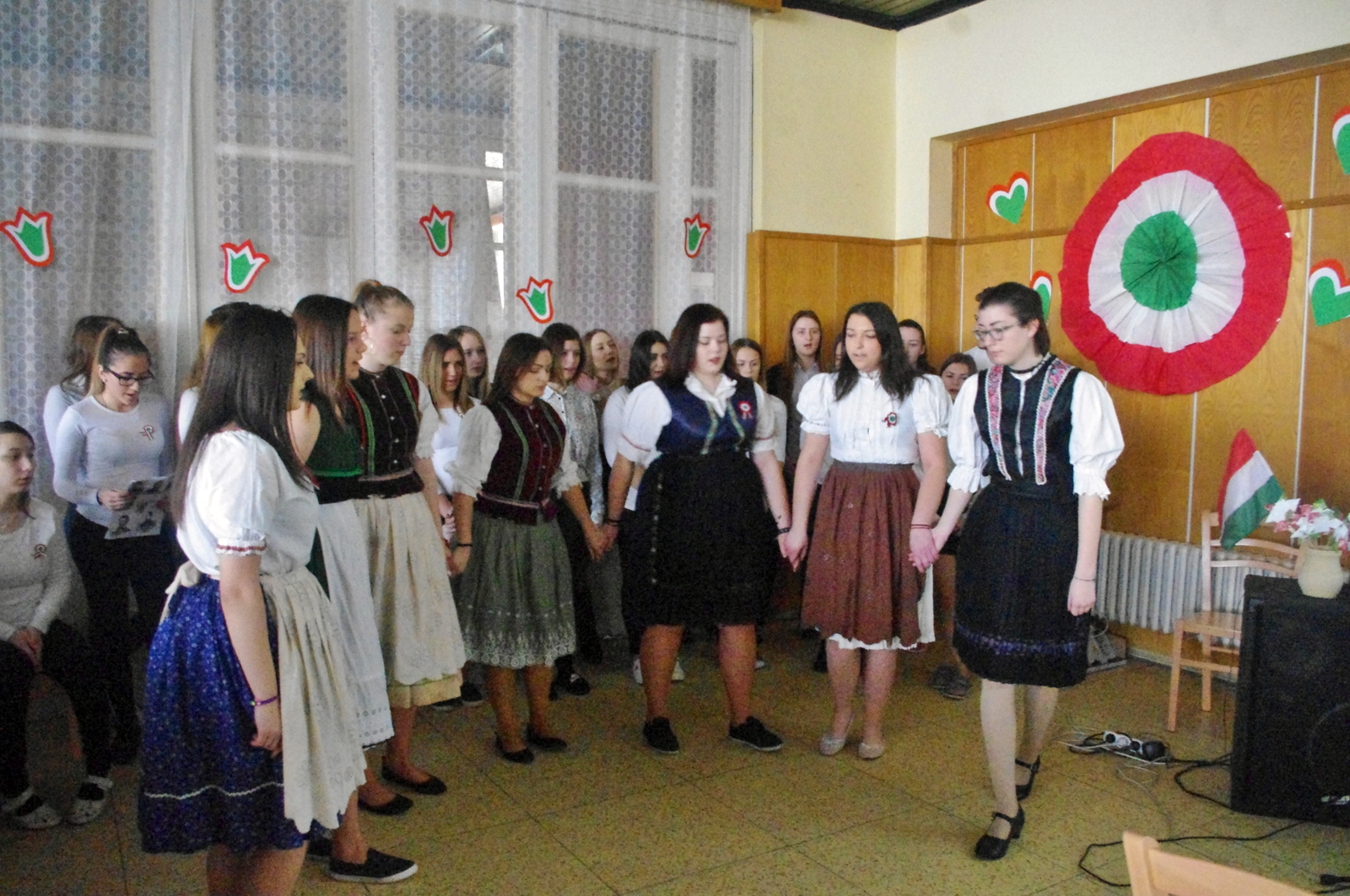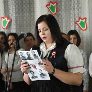 A Petőfi, Vasvári, Irinyi, Vajda, Jókai, Táncsics és Landerer történelmi jelentőségét bizonyító sorokon kívül elhangzottak továbbá a naphoz fűződő versrészletek is, az alkalmi diákkórus tolmácsolásában pedig  felcsendült a híres Kossuth-nóta, a Talpra magyar népzenei változata ill. a Tavaszi szél vizet áraszt című dal is, néptánc kíséretben.