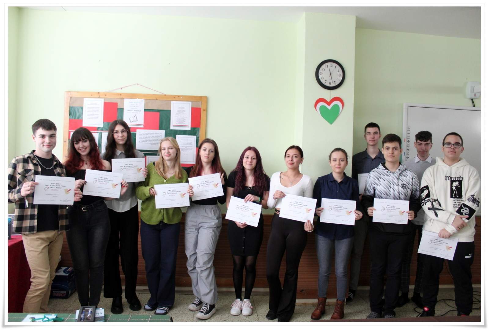 2023. február 6-án került megrendezésre a Tompa Mihály Vers- és Prózamondó Verseny iskolai fordulója. A megmérettetésen 12 irodalomkedvelő diák vett részt. Nagy többségük klasszikus szerzők alkotásait adta elő, de akadtak olyanok is, akik kortárs költők műveit szavalták el. A zsűri rendkívül elégedett volt a szavalatokkal. Szokás szerint nehezen jutottak döntésre abban, hogy kik jussanak tovább. Ezúttal Kubicsek Vivien (IV.A), Perleczky Balázs II.B, Kürthy Réka (I.SM), Győri Jázmin (I.B), Csápai Balázs (III.A), Bíró Leila (I.A), Mezei Lili (V.D), Győri Vivien (III.D) képviselik iskolánkat a járási fordulón.