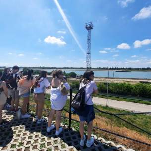 Komáromban megtekintették a Jókai színházat, a Jókai múzeumot, a Szent András templomot, az Európa udvart, a Klapka teret, a Tiszti pavilont és annak udvarát és a Komáromi központi erődöt. A diákok a városnézés keretén belül gyakorolták az idegenvezetés alapjait is.