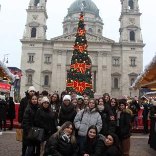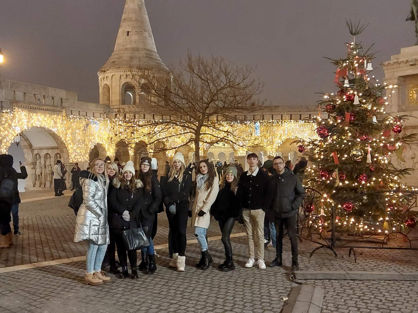 Iskolánk hagyományos karácsonyváró rendezvényei közé tartoznak a közeli fővárosokban megrendezett adventi vásárok meglátogatása. Idén az I.B, a II.B, a II.SM, a III.SM és a IV.D osztályok diákjai a 150 éves magyar főváros, Budapest ünnepi készülődésére voltak kíváncsiak. A Szent István Bazilika előtti téren Európa egyik legszebb vásárában bolyongtak, ill. többük a Vörösmarty téri nagy mértékben kézműves portékákat felvonultató árukínálatát fedezték fel. Az ajándékvásárlás és ünnepi étkek fogyasztása mellett megcsodálhatták az egyedi, különleges kirakatokat, a nem mindennapi városképet. Este pedig a Budavári Palota kilátóteraszáról a ködben úszó Budapest fényeiben gyönyörködhettek, ill. a Mátyás-templom mellett, a Halászbástya szomszédságában megrendezett adventi sokadalomnak is részesei lehettek.