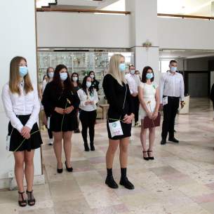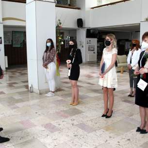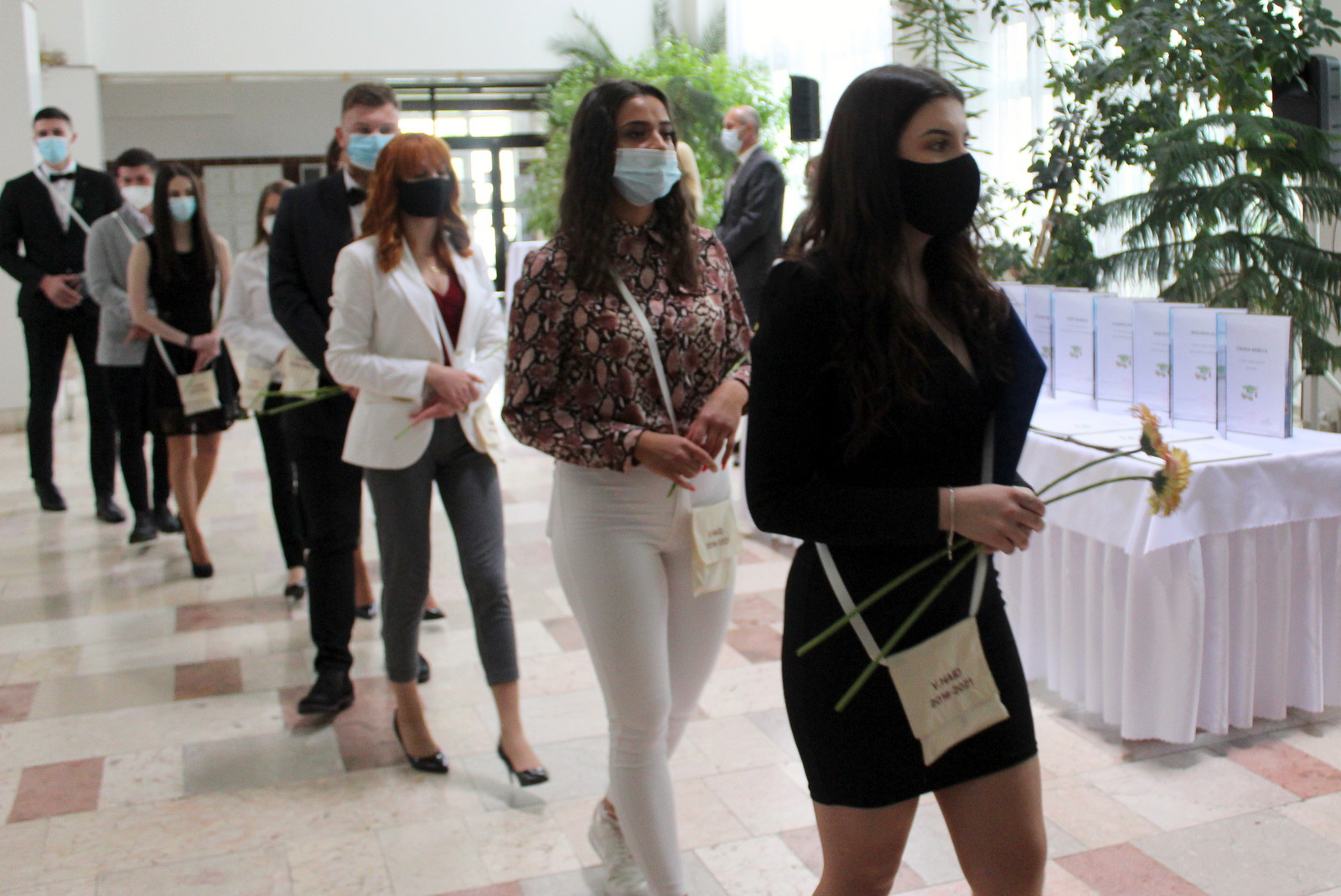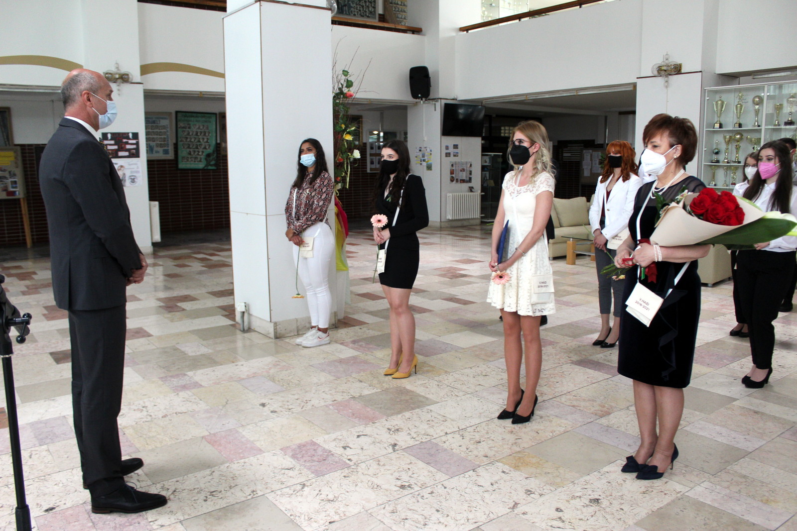 „Ballag már a vén diák..“ – ma újra felcsendült ez a dal iskolánkban. Legutóbb két éve hallottuk ezeket a dallamokat. Örültünk, hogy bár csak szimbolikusan, de mégis megtarthattuk ezt az ünnepséget, sok szerencsét kívánhattunk Nektek. Igaz, hiányoztak a színpompás csokrok, a büszke szülők, hozzátartozók, a kedves barátok. Mosolyotokat is csak elképzeltük, kimaradt a kézfogás, a bátorító ölelés. Büszkék vagyunk Rátok, hogy az elmúlt nehéz időszakot – a közel tíz hónapnyi digitális oktatást - rugalmasan és talpraesetten abszolváltátok. A nagybetűs Élet már elkezdődött számotokra... Ehhez kívánunk Mindannyiótoknak kitartást, sok sikert és jó egészséget! Vigyázzatok magatokra!