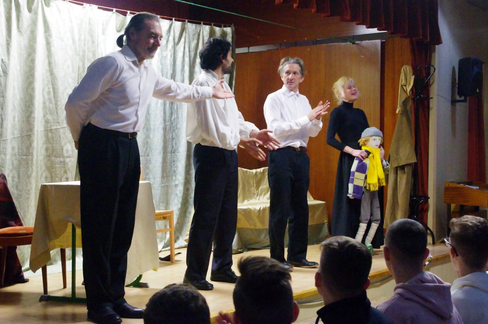 2018.12.17-én ismét ellátogatott az iskolánkba a The Bear Educational Theatre, prágai székhelyű színháztársulat, akik angol nyelven adták elő Charles Dickens Karácsonyi ének című klasszikus művét. A mű fő mondanivalója a mai világban is aktuális, az ünnepek valódi szerepének a megértése, a szeretet felébresztése az emberekben. A főszereplő miután szembesül a saját gonoszságával, az átélt élmény hatására kedves, jólelkű emberré válik, megtalálja a magában rejlő jót és átadja magát az ünnep varázsának.