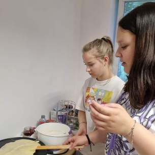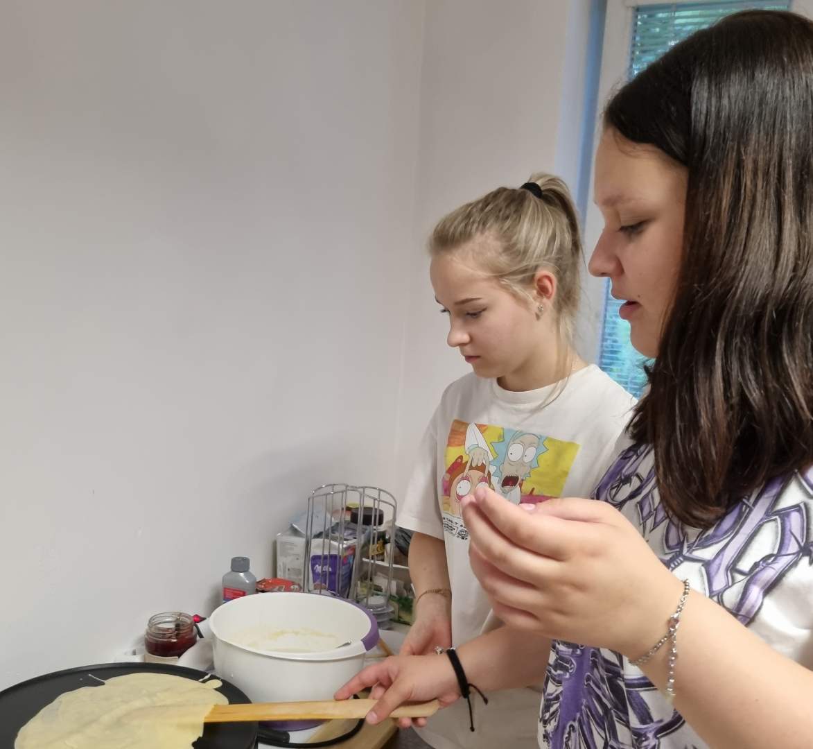 Csónakázás és a biciklitúra után, palacsintasütés tette színesebbé, gazdagabbá a lányok és fiúk szabadidejét. A közös sütés, a palacsinta elfogyasztása és a közös takarítás, észrevétlenül