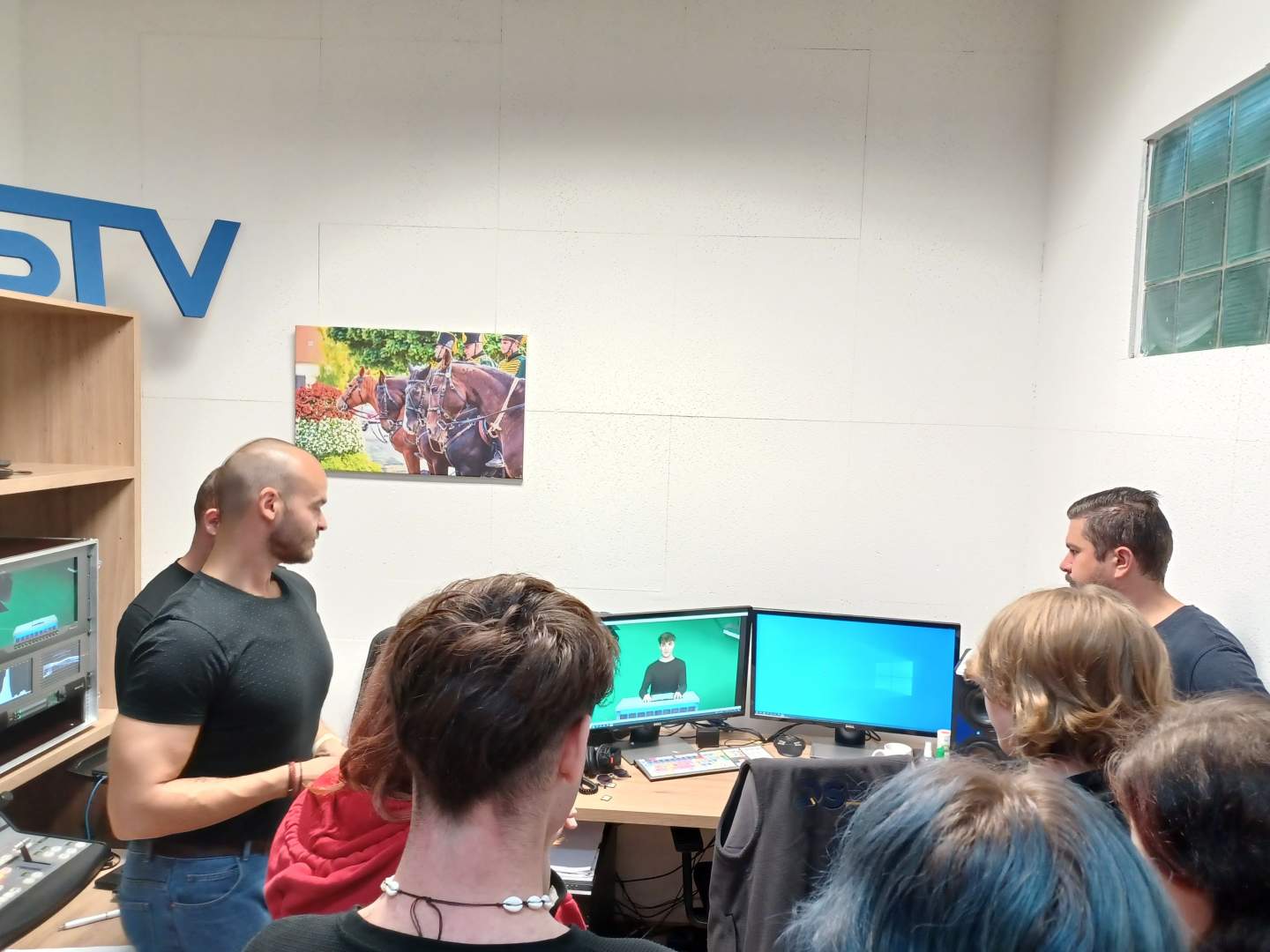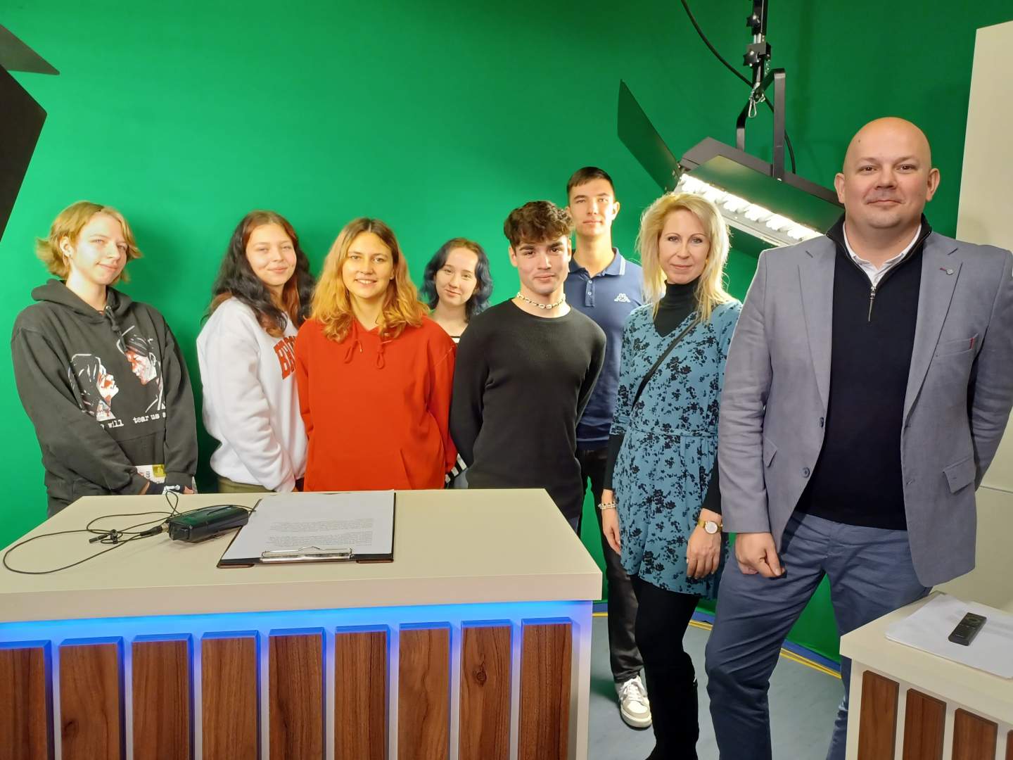 Megismerkedhettek a DSTV működő stábjával, akik betekintést nyújtottak a műsorok összeállításába, technikai kivitelezésébe, a forgatások menetébe. Diákjaink megnézhették a stúdió berendezéseit, a világítást, a kamerafelszerelést is. Természetesen kipróbálták magukat a kamera mögött hírmondóként, ami nagyon érdekes, ám nem egyszerű feladat volt a bevállalós fiatalok számára.