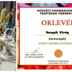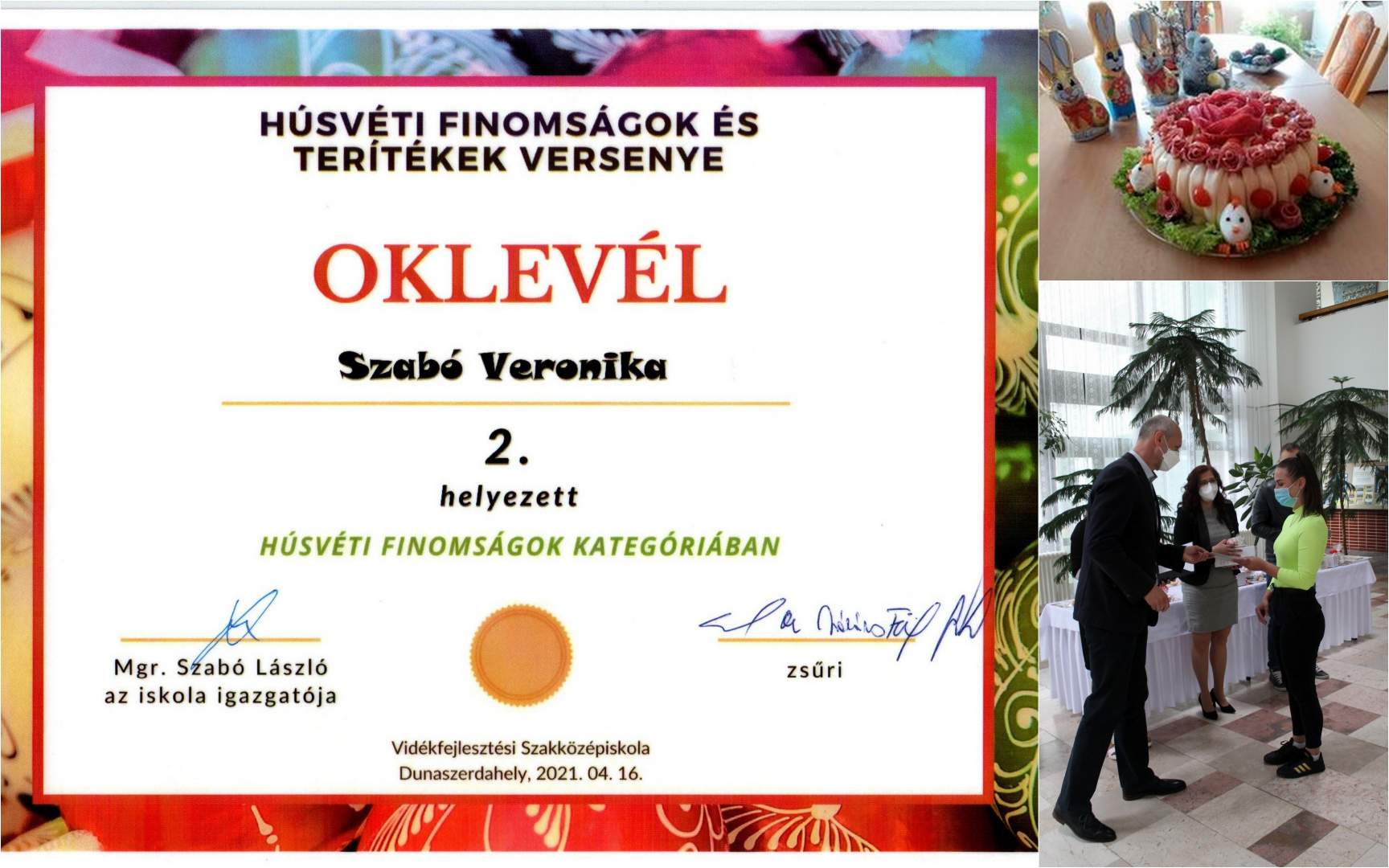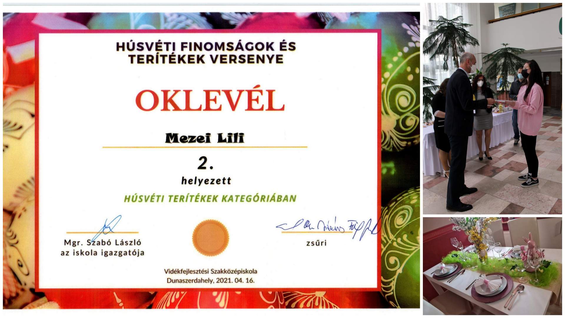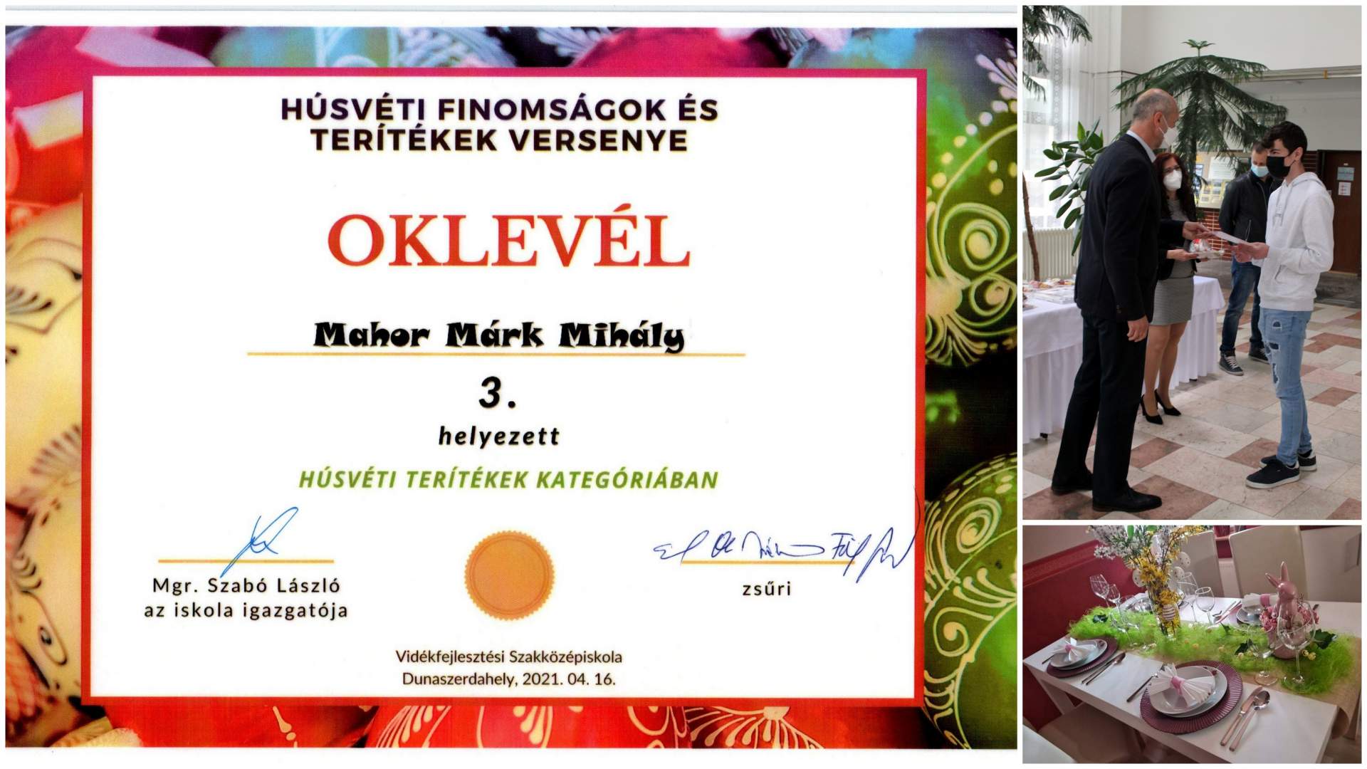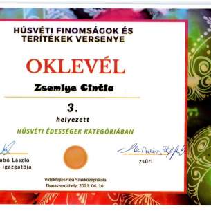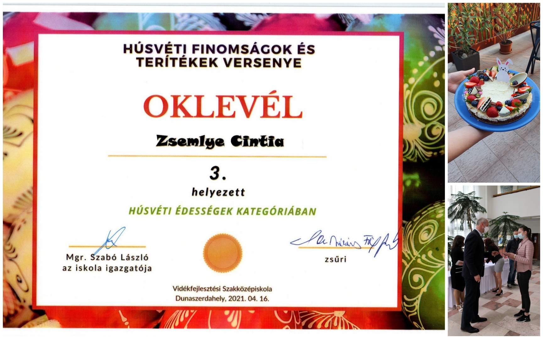 Nagy örömünkre szolgált, hogy a húsvét alkalmából megrendezett gasztronómiai versenyt már nem online formában, hanem az iskola épületében, diákjaink jelenlétében tudtuk kiértékelni. A versenyzők eredetileg két kategóriában nevezhettek, de annyi nagyszerű pályamunka érkezett be, hogy a zsűri végül három kategóriába sorolta a konyhaművészeti alkotásokat: teríték, finomság (étel), édességek (desszert). Kategóriánként három helyezett kapott díjat, továbbá az iskola facebook-oldalán legtöbb lájkot kapott versenyzők pedig különdíjban részesültek.
