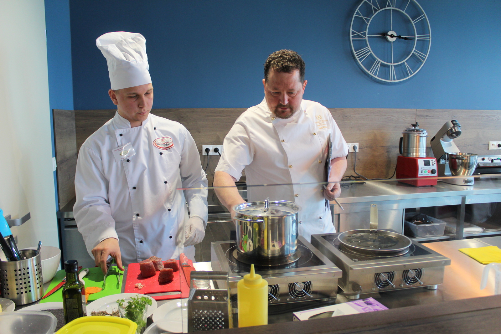 A szintén az iskolát képviselő, Fehér Tamás ugyan nem ért el dobogós helyezést, de a répapürével és burgonyatócsnival szervírozott mákba forgatott szűzpecsenyéjének ízvilágát elismerő szavakkal illették.