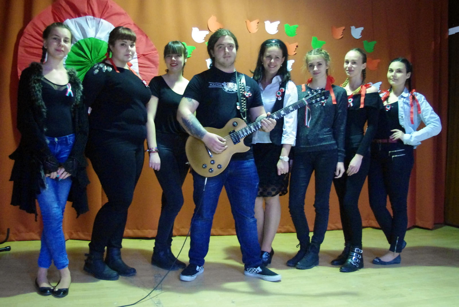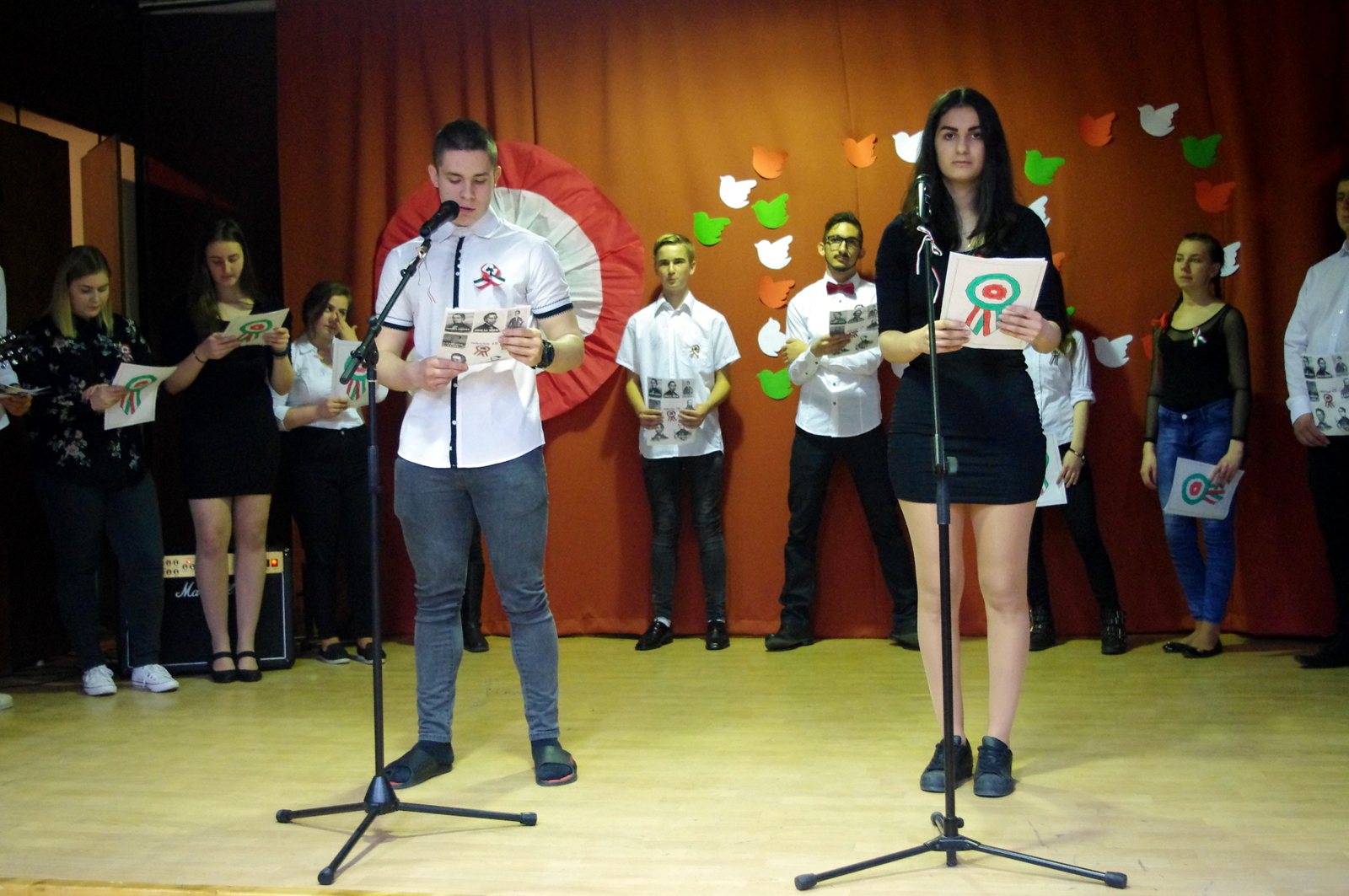 Szabadság, szerelem címmel zenés-irodalmi műsort tartottak iskolánkdiákjai március 15-én.A márciusi forradalom 170. évfordulójának tiszteletére összeállított programban azokról a fogalmakról emlékeztek meg dalban és versben, amelyek mára már szinte összeforrtak legnagyobb nemzeti ünnepünkkel. Szó volt a 12 pontról, a Pilvax Kávéházról, a Nemzeti Múzeumról és természetesen a Nemzeti dalról is. A forradalmárok mellett azokról is szóltak, akik 1848 főszereplőit a háttérből támogatták, akik olykor maguk is fegyvert ragadtak, sebesülteket ápoltak, menekülteket bújtattak vagy éppen csak csendesen szeretteikért aggódtak. Ők voltak a márciusi ifjak szerelmei, lánytestvérei, többek közt Szendrey Júlia, Laborfalvi Róza, Damjanichné Csernovics Emília, ill. Kossuth Zsuzsa és Teleki Blanka.Bár a forradalom mozzanatait a diákság úgy ismeri már, mint a bibliai történeteket, Nyáry Krisztián frissen megjelent Fölébredett a föld című könyvéből és annak promóciós videóiból sikerült olyan újdonságokat bemutatni, amelyek eddig még nem voltak ismeretesek.Az ünnepi műsort az iskola tehetséges énekesei és zenészei a legismertebb forradalmi dalok előadásával, tánccsoportja pedig piros-fehér-zöld koreográfiájával tette még emelkedettebbé. A megemlékezés videóanyagát egyrészt a Red Bull Pilvaker projekt tavalyi előadásának részletei, másrészt pedig felvidéki előadóművészek (Vadkerti Imre, Ghymes, Szvorák Katalin) produkciói képezték. A felkészítő tanárok, Nagy Zsuzsanna és Kis Lívia szabadságköszöntő gondolataival és a Himnusz eléneklésével zárult az idei ünnepi rendezvény.