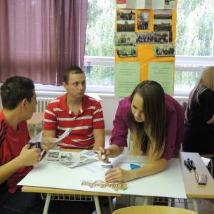 Ezen alkalomból, immáron másodszor került iskolánkon megrendezésre az „Európai Nyelvek Napja.“ Ezáltal szerettük volna felhívni diákjaink figyelmét a nyelvi sokszínűség tiszteletben tartására valamint a nyelvtanulás fontosságára. Megszerveztünk egy angol valamint német nyelvű vetélkedőt. Diákjaink szép számmak bekapcsolódtak a programokba -30 németes és 40 angolos diák, három illetve négyfős csapatokat alkotva. Csapatonként kvíz kérdéseket oldottak meg, majd jó hangulatban különböző nagyon ötletes angol és német tematikájú posztereket készítettek, melyek közül a legjobbakat díjaztuk és kiállítottuk iskolánk aulájában. A németesek közül a III.CR/B osztály tanulói : Sajben Karin, Šandula Nikoleta, Šípos Adrián, Madarász Dajanavalamint Pócs Emese bizonyultak a legjobbnak, míg az angolosok közül a IV.CR/B osztály tanulói : Papp Mária, Harangozó Tibor és Zsalkovics Tímea végeztek az első helyen. A napot egy angol és egy német nyelvű film megtekintésével zártuk.