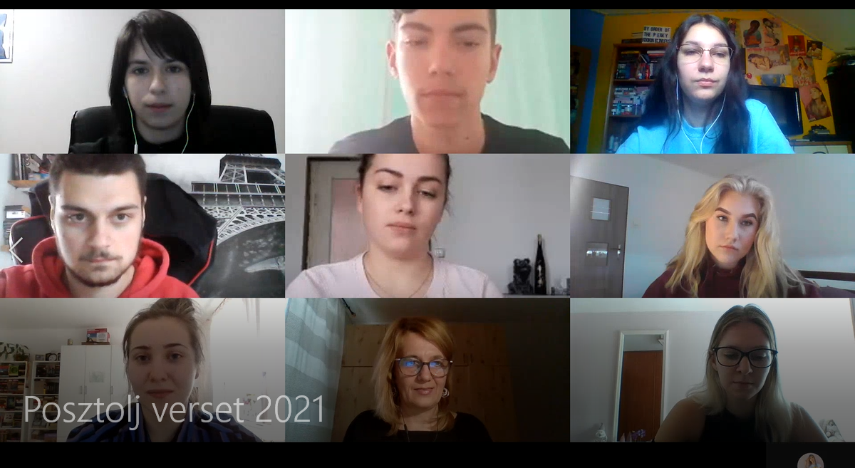 Április 11-én, a magyar költészet napján iskolánk irodalomszerető diákjai minden évben részt vesznek a Posztolj verset az utcára! kihívásban, amelynek lényege, hogy árasszuk el a hirdetőoszlopokat, valódi üzenőfalakat, járdákat, és minden legálisan posztolható felületet versekkel! Sajnos már második éve csak a virtuális térben posztolhatunk.