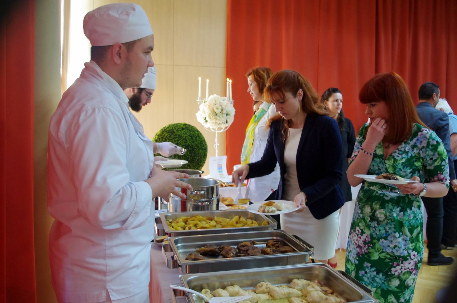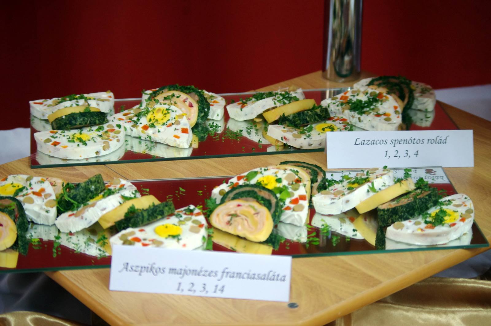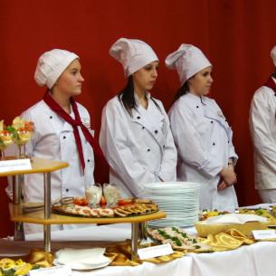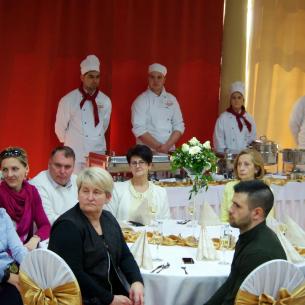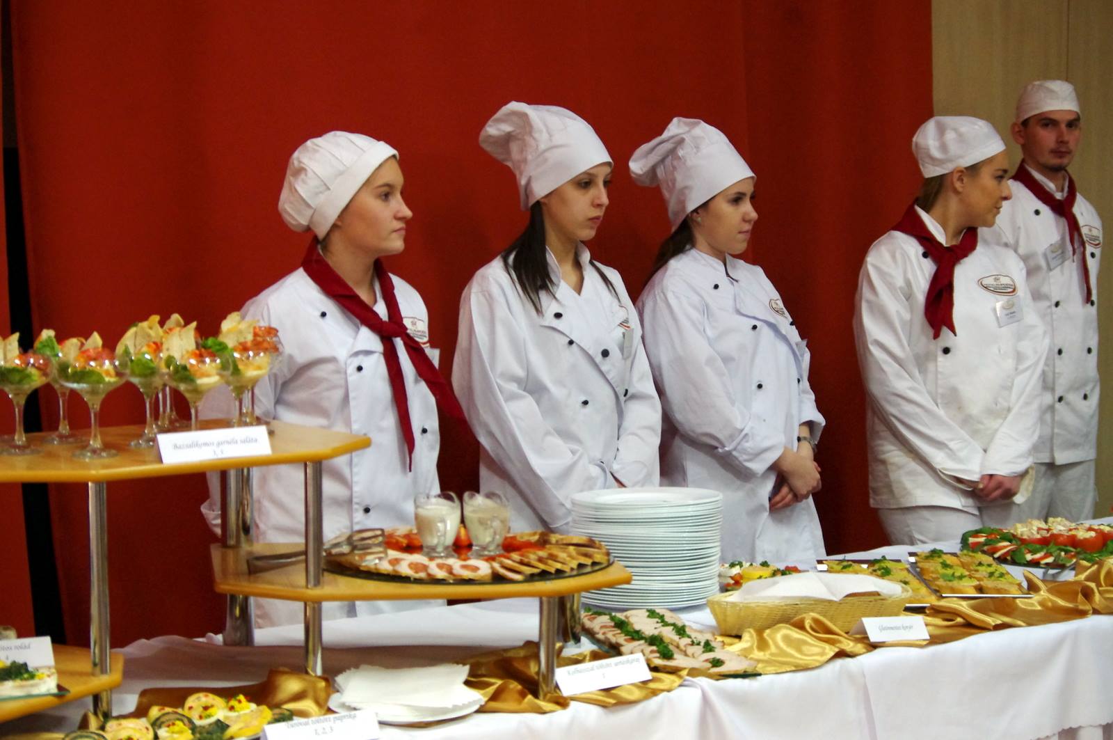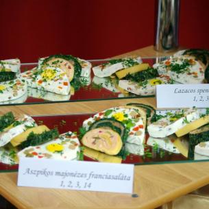 Az abszolvensek munkájuk gyümölcsét a tulajdonképpeni eseményen prezentálták. Tanáraikat gazdagon megrakott asztalokkal ünnepi díszbe öltöztetett teremben várták. Annak ellenére, hogy ez az osztály az elmúlt öt év során már nem egyszer szervezett színvonalas ételbemutatót, a pazar ételkínálat ámulatba ejtett mindenkit. A hidegkonyhai készítmények közül sokan választották a lazacos spenótos roládot, az aszpikos majonézes franciasalátát, a kolbásszal töltött sertéskarajt és a velős pirítóst. A levesek közül a ramen és a brokkolikrémleves egyaránt népszerű volt.