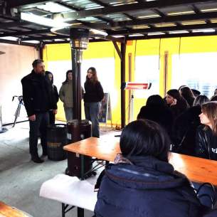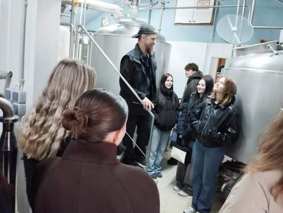 Az első állomás Győrújbaráton volt, ahol a Vaskakas Sörfőzde tulajdonosa személyesen fogadta a csoportot. A tanulók két csoportra bontva vettek részt egy részletes előadáson, amely átfogó képet adott a sörgyártás folyamatáról. Megismerkedtek az alapanyagokkal, a készítés technológiai lépéseivel, a különböző sörtípusok jellemzőivel, valamint a higiéniai előírásokkal és a szakszerű csapolás fortélyaival is.
