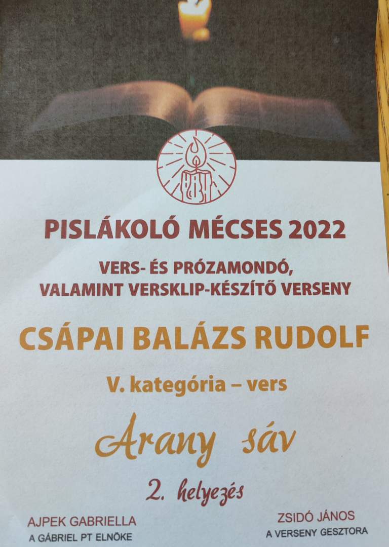 Csápai Balázs Rudolf - arany sávos, Egri Tímea - ezüs tsávos minősítést ért el. Az elért sikerhez szívből gratulálunk!